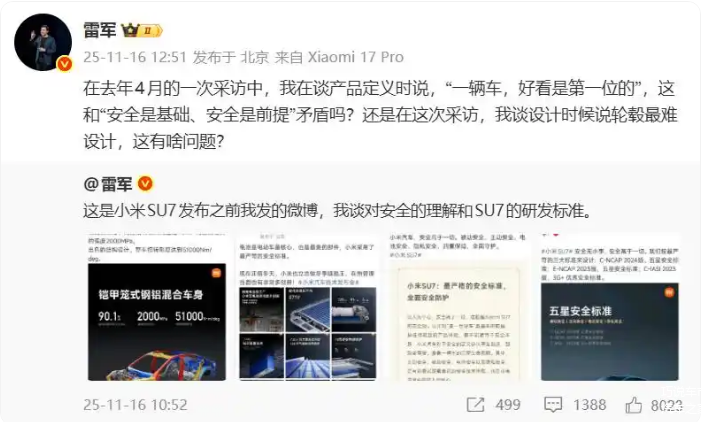 雷军那句“好看是第一位的,安全是基础”的辩解,在舆论场中掀起的滔天巨浪,本质上是“雷军IP”这副穿了多年的黄金铠甲,终于在反复的舆情冲击下露出了锈迹。