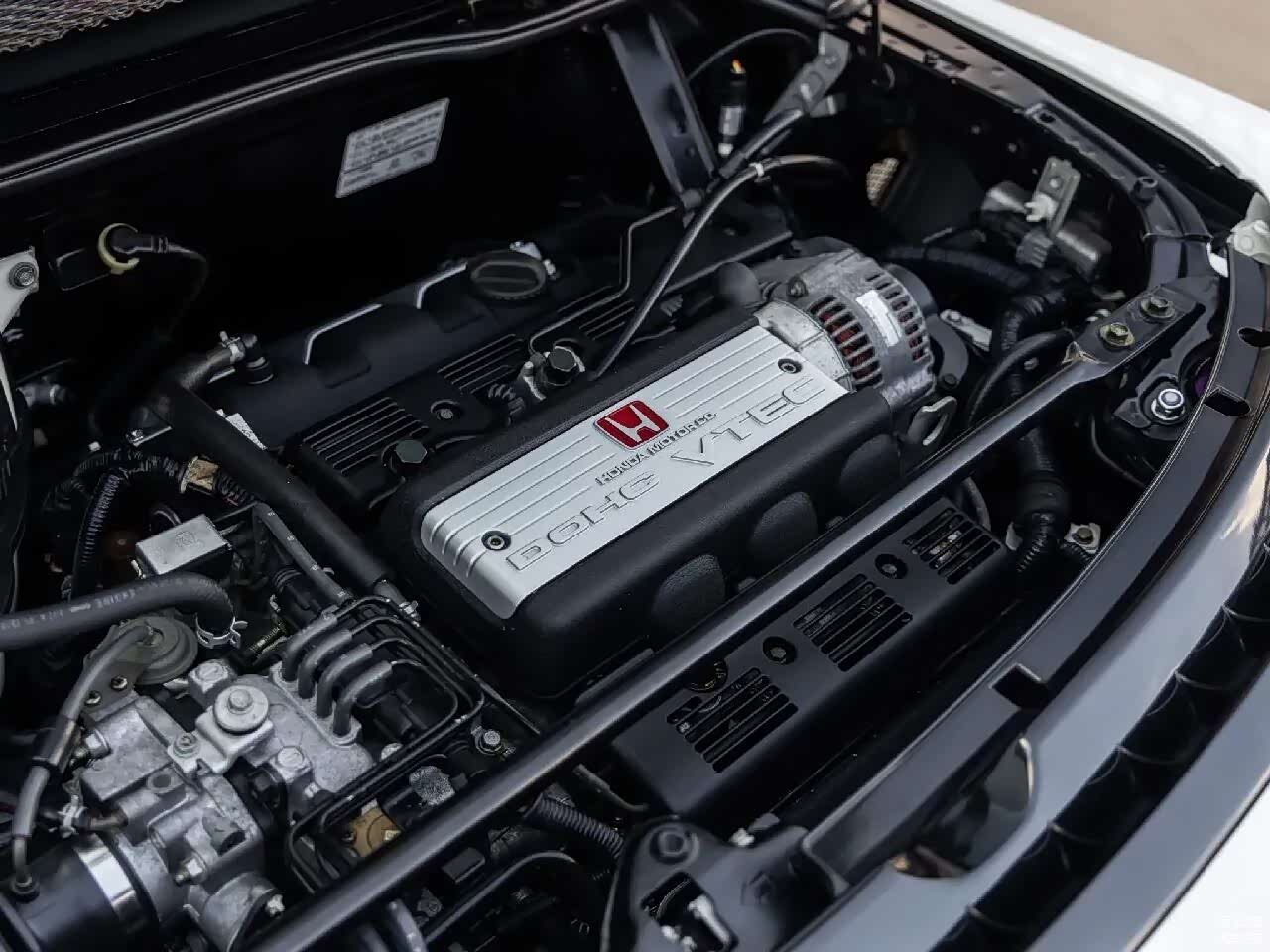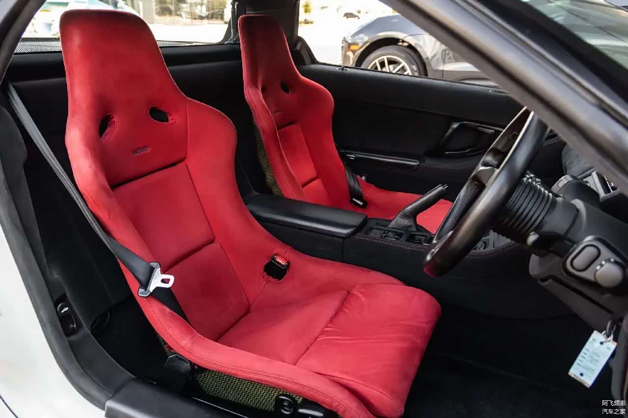 这台拍卖的1995款NSX-R,堪称“收藏级完美状态”的典范。车身采用NSX-R标志性的“冠军白”(Championship White)涂装,这一颜色不仅是本田赛车的经典配色,更成为NSX-R的专属标识,在岁月的沉淀下仍保持着饱满的光泽。