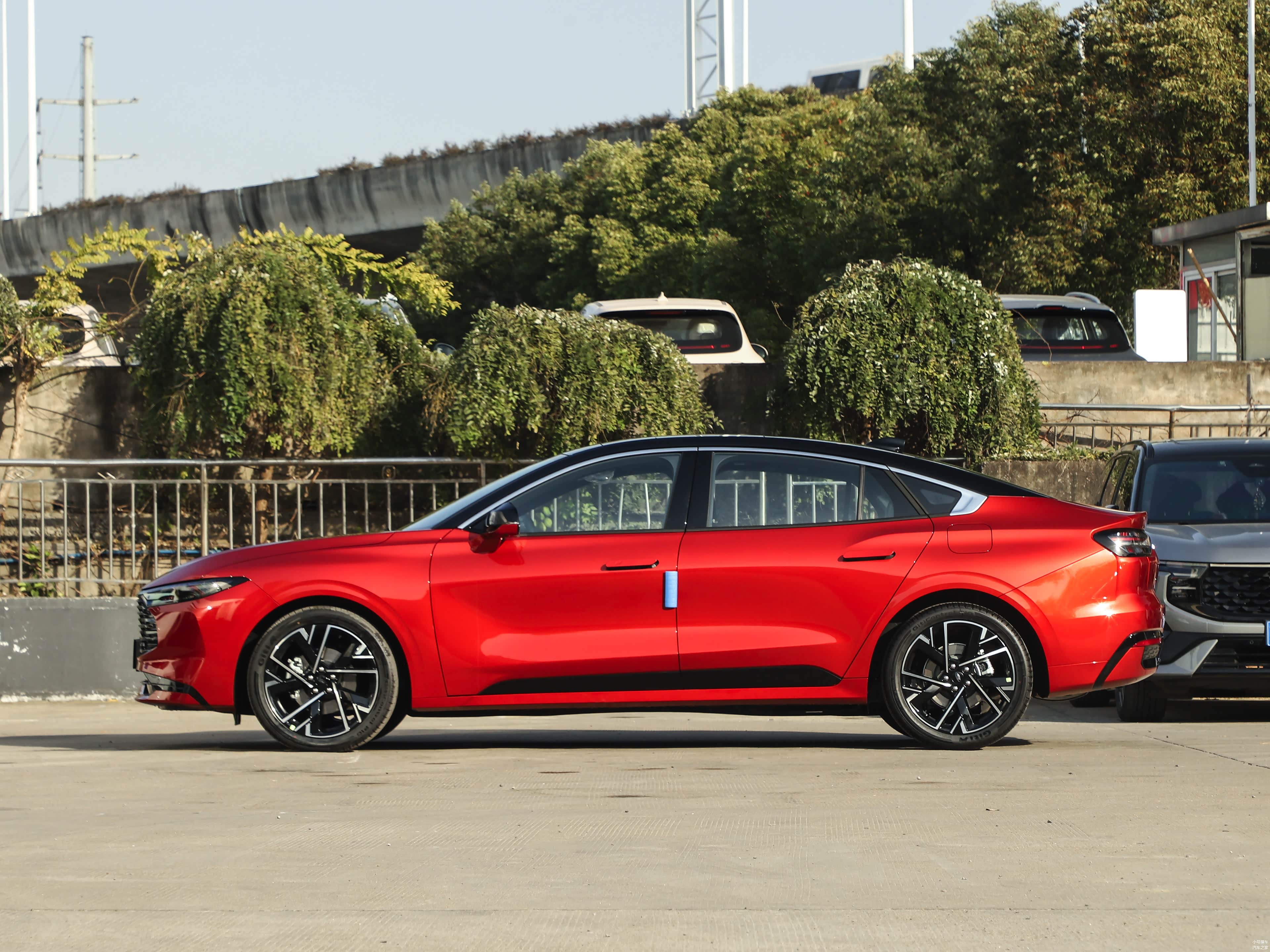 车身侧面的造型没有什么变动,车顶依然是溜背式造型,线条感显得比较干练,搭配鲨鱼鳍凸显了运动气息;腰线采用了分段式设计,点缀出了车身侧面的层次感;门把手则是弹出式造型,能够起到降低风阻的作用;轮眉和侧裙部分设计有隆起的筋线,有着一定的肌肉感;轮毂则是五辐式花瓣造型,风格比较大气。