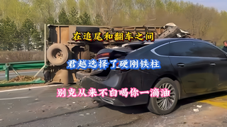 在追尾和翻车之间,君越选择了硬杠铁柱,别克从来不白喝你一滴油