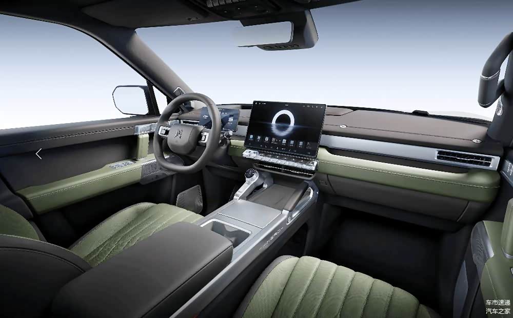 猛士M817车身“三围”的长宽高分别为5100*1998*1899mm,轴距达到3005mm,座椅布局为五座。该车的内饰也呈现出硬派越野车的风格,车内采用大量横平竖直的线条,还保留了实体按键,融合了很多功能的中控大屏,也显示出一定的科技感。