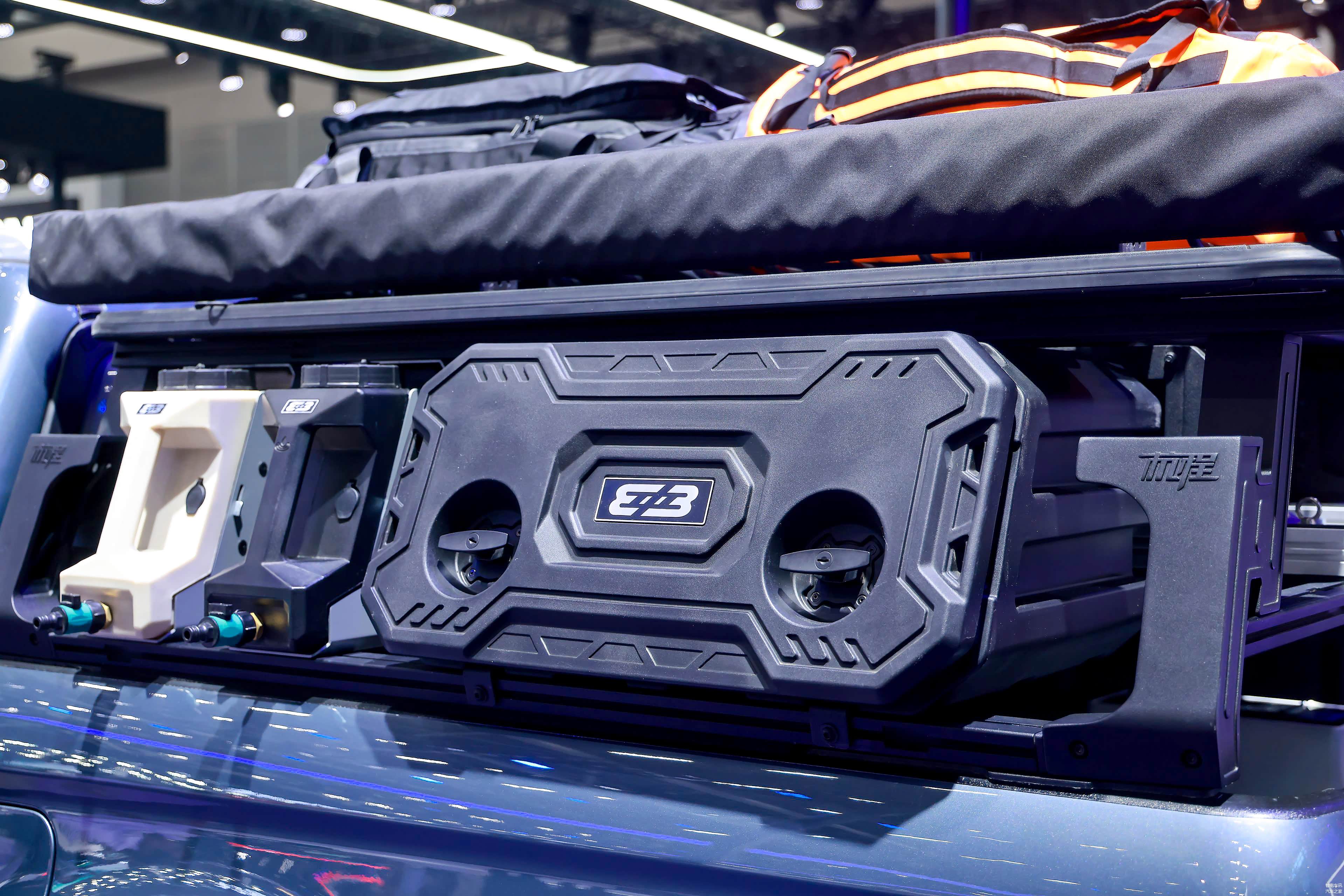这一设计并非噱头,而是基于用户真实场景的深度洞察。作为户外生活的“移动电站”,悍途PHEV标配3.3kW外放电,并可拓展至15kW,能同时支持电烤炉、投影仪、植保无人机等高功率设备。其电池潜在储备电量超过200度,堪称“随车储能站”。