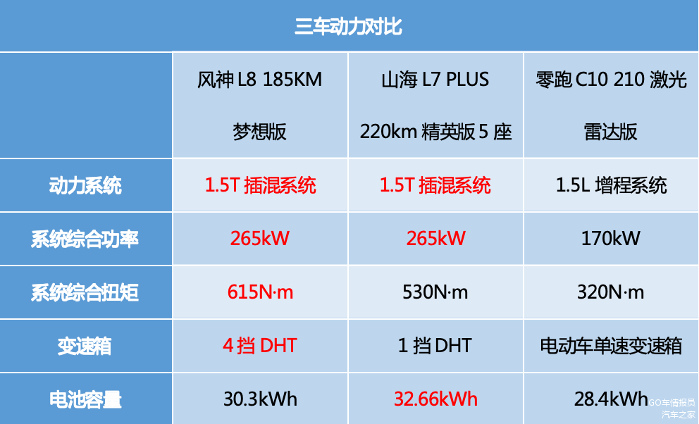 对于家庭用户来说,选购混动SUV的核心需求是“适配全场景、满足全家需求”,因此有几项硬性指标必须满足,包括颜值、舒适、动力、续航、能耗等,这些因素直接关系着全家人的用车体验。如果你的预算在15万左右,热度居高不下的风神L8、山海L7 PLUS和零跑C10都是不错的选择。接下来,我们选取售价14.99万风神L8 185KM梦想版、售价14.59万山海L7 PLUS 220km精英版5座售价13.28万零跑C10 210激光雷达版进行对比,看看谁才是真正的“全能王”。