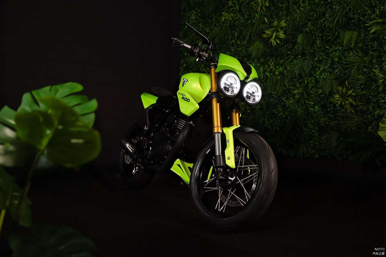 对于资深的凯旋车迷来说,第一眼看到 Viper 400 绝对会心一笑,甚至热泪盈眶。 那个经典的「Roulette Green」轮盘绿烤漆,直接把时光拉回了 Speed Triple 最辉煌的年代。