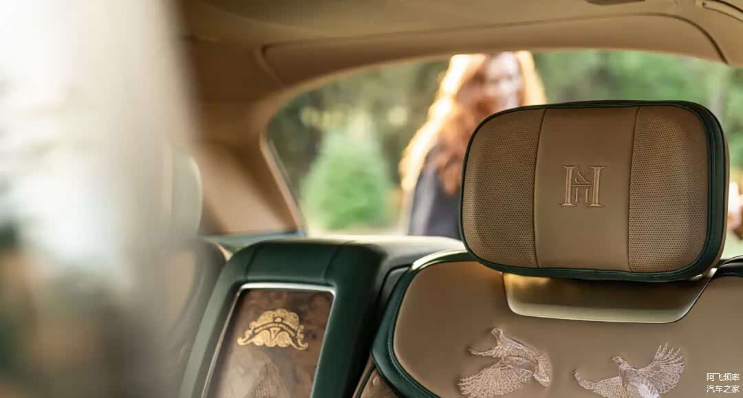 座椅采用顶级真皮包裹,原本就极具舒适性的基础款座椅,经过重新剪裁与定制,刺绣着精致的狩猎场景图案,头枕上的品牌字母组合刺绣更添专属感。