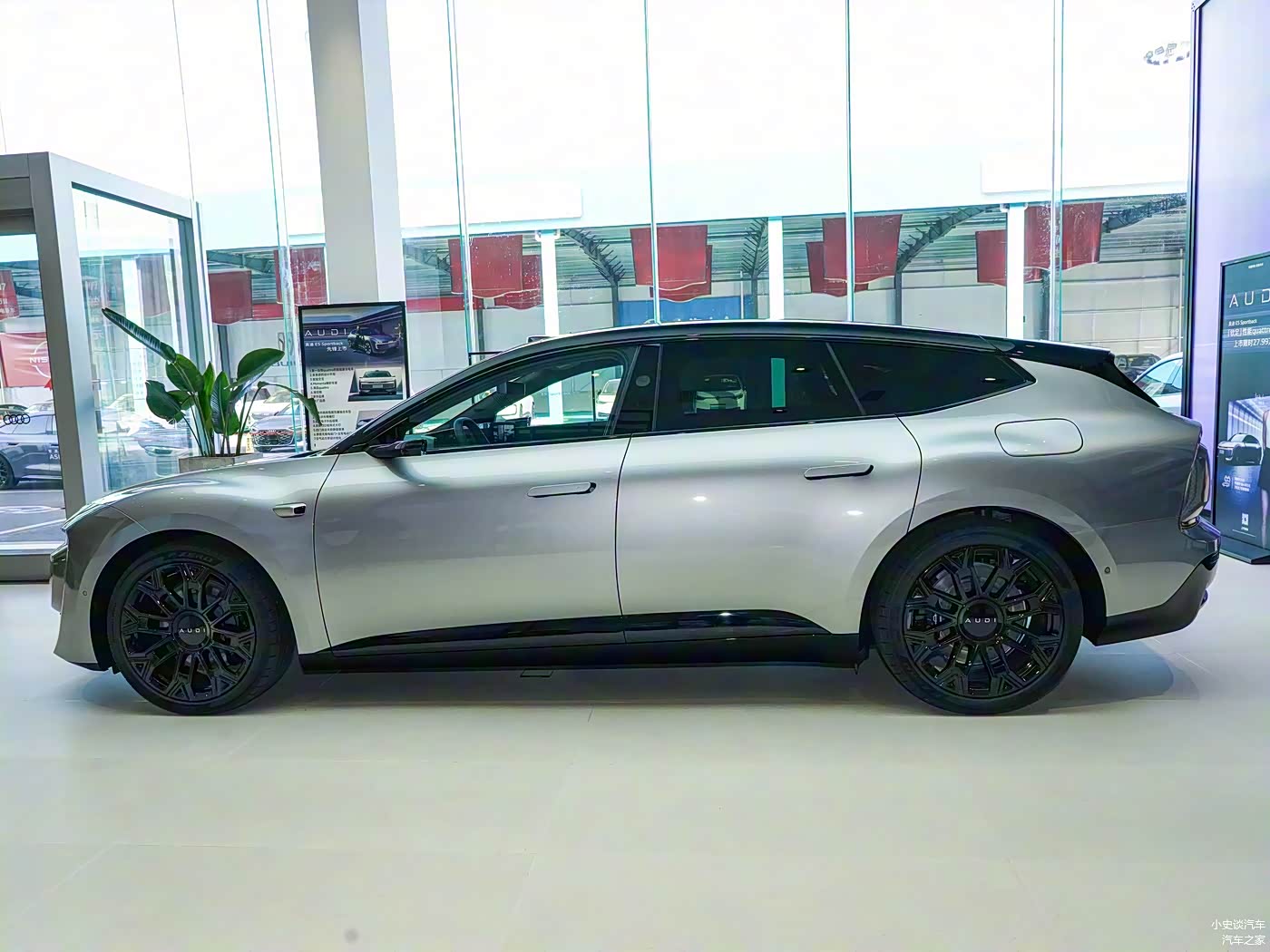 再来看车身侧面部分,新车创新融合了奥迪经典的轿跑流线与瓦罐(旅行车)车身形态,形成低趴的掀背轿跑造型。流畅的线条从车头延伸至车尾,勾勒出极具动感的轮廓,搭配无框车门和隐藏式门把手,不仅减少了风阻系数,更提升了整车的科技感。车顶线条在B柱后开始下滑,与车尾自然衔接,形成优雅的溜背效果,同时保证了后排乘客的头部空间。20英寸轮毂的加入,让车身比例更显协调,车身尺寸定格在 4881×1960×1479mm,轴距达到 2950mm。