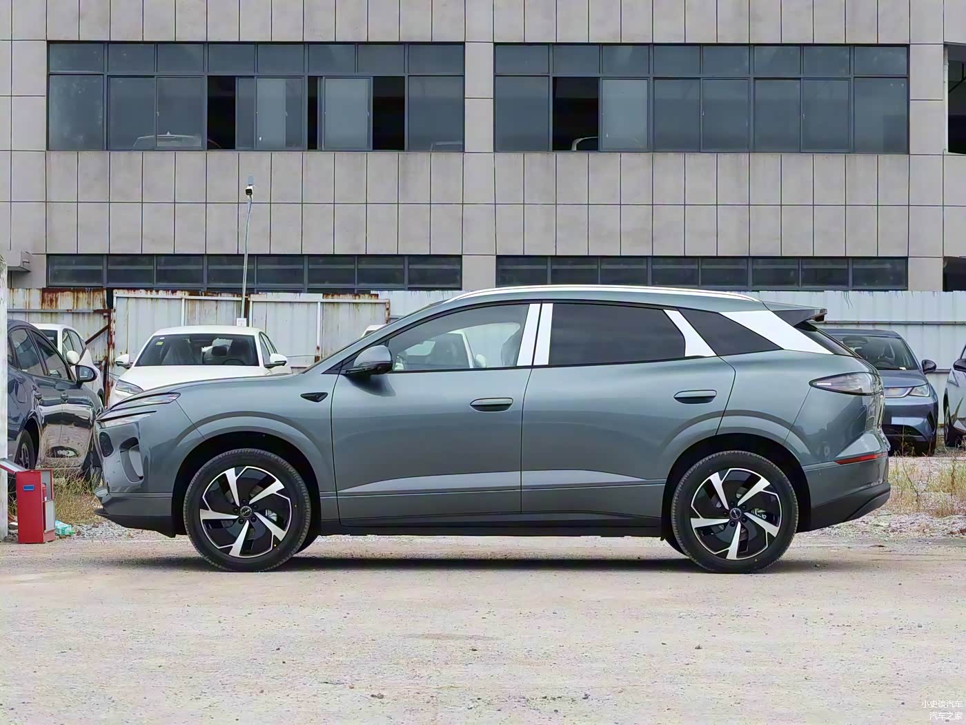 再来看车身侧面部分,车身侧面采用溜背式设计,搭配上扬的腰线,营造出蓄势待发的运动姿态。4810mm的车长与2820mm的轴距,确保了车内空间的宽敞性,同时通过短前悬设计,进一步优化了乘员舱空间。 侧裙处的波浪纹路饰板与双层腰线设计,增强了车身的层次感,而半隐藏式门把手则兼顾了美观与实用性。并且较高的离地间距既保证了底盘通过性,又强化了运动基因,彻底打破传统家用 SUV 的臃肿印象。