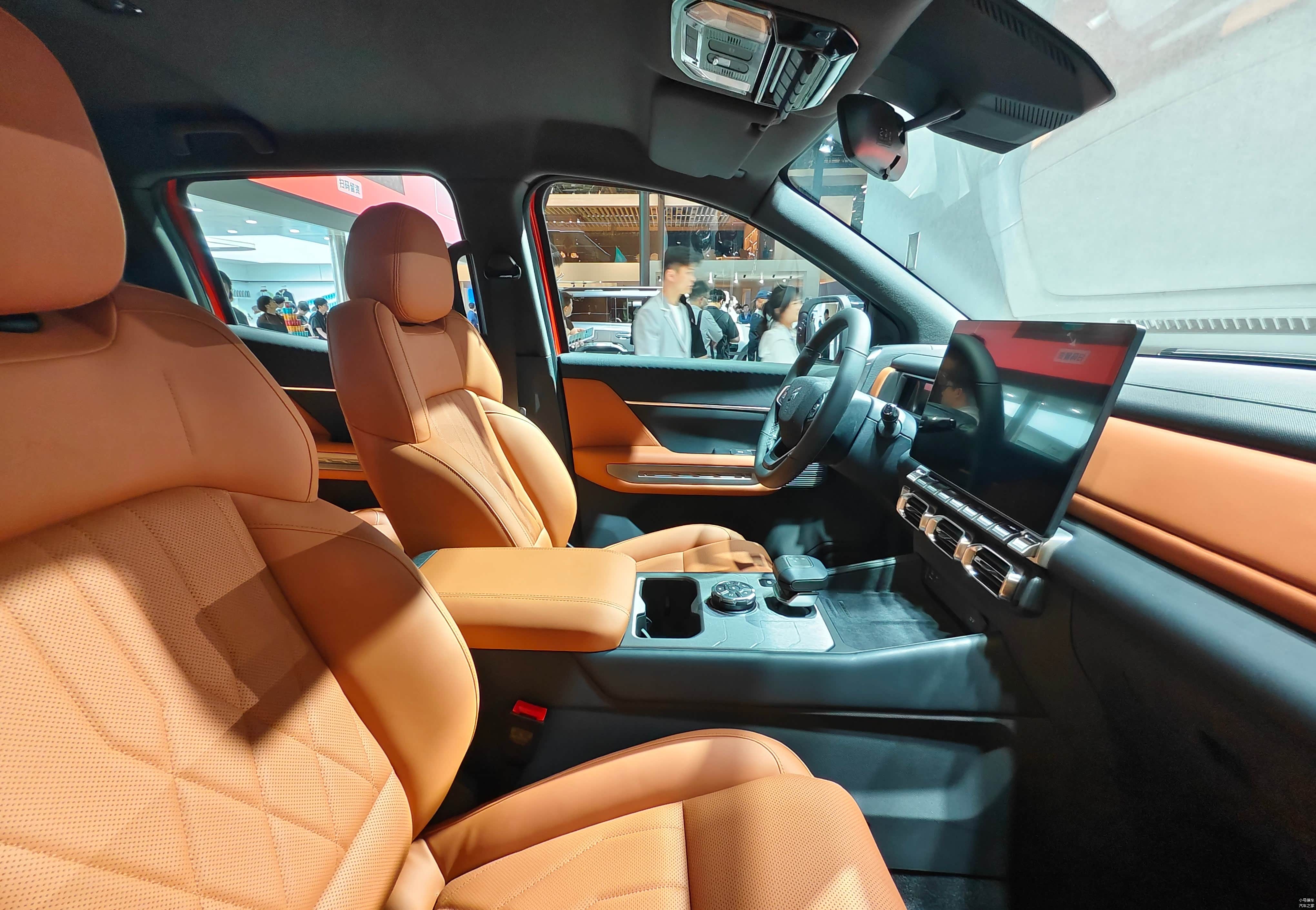 内饰方面也是比较简洁的风格,提供有三幅式多功能方向盘、液晶仪表盘、悬浮式中控屏以及电子挡把,线条感属于比较硬朗的类型。