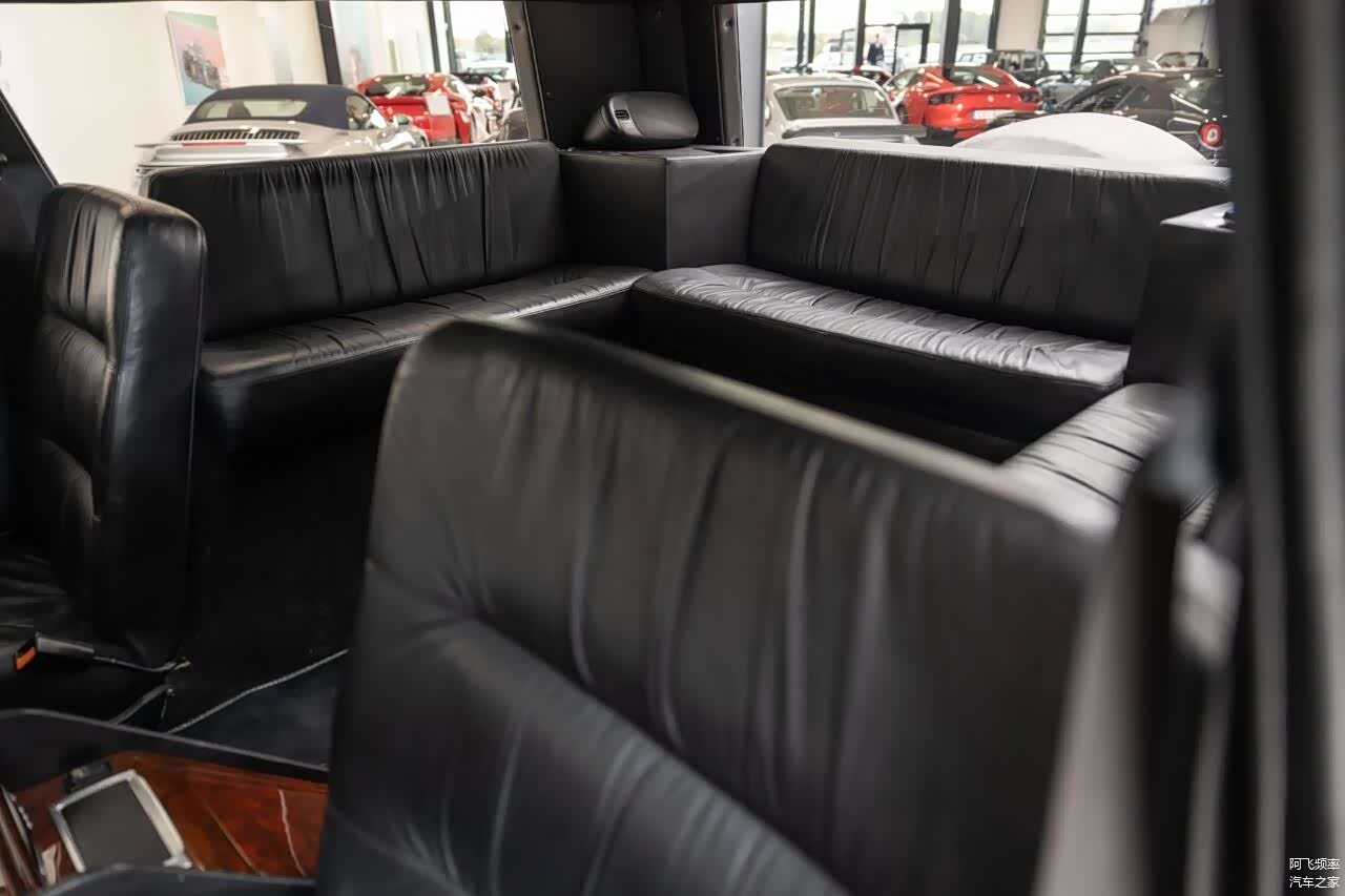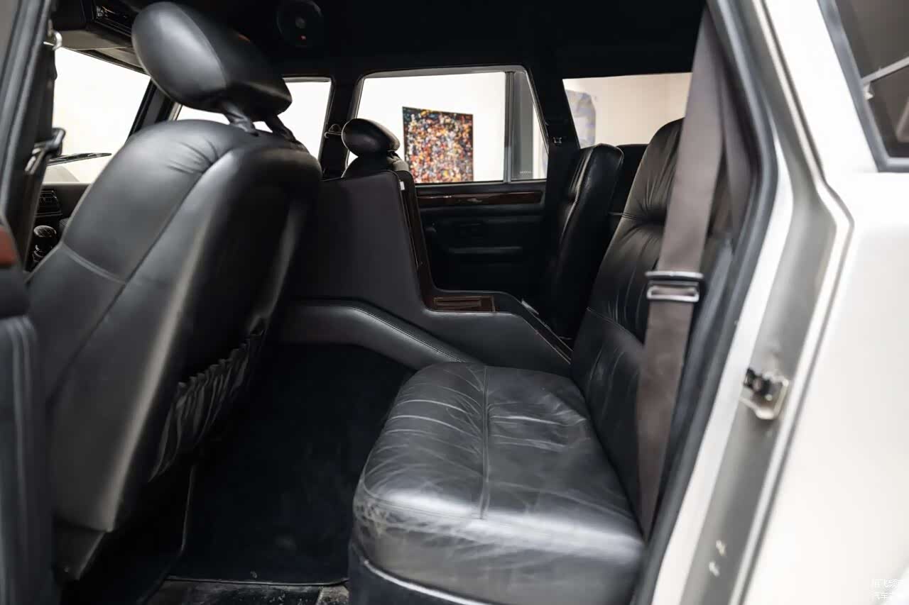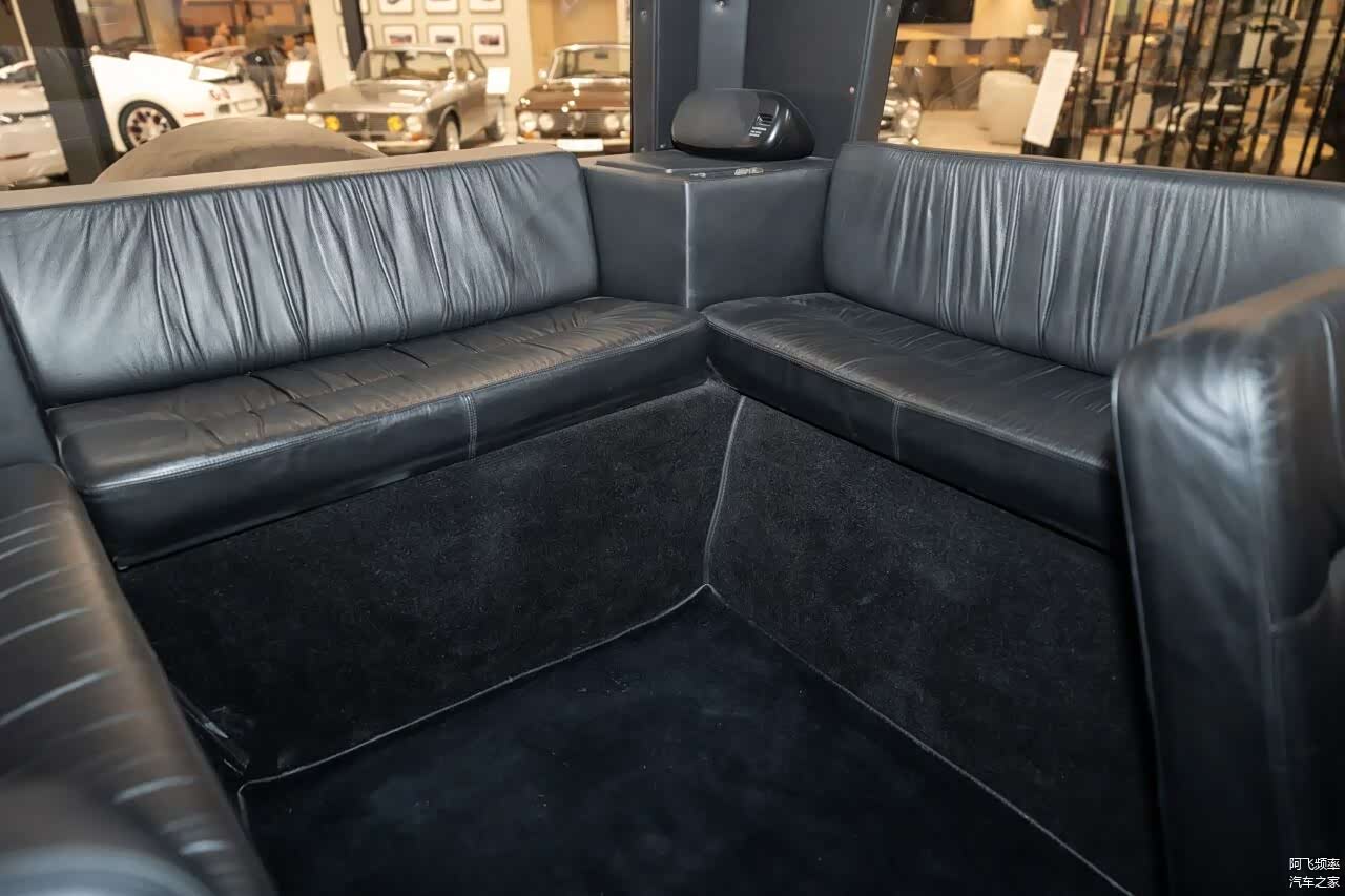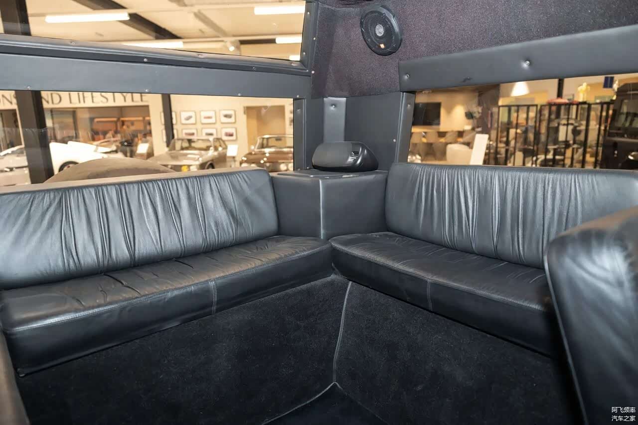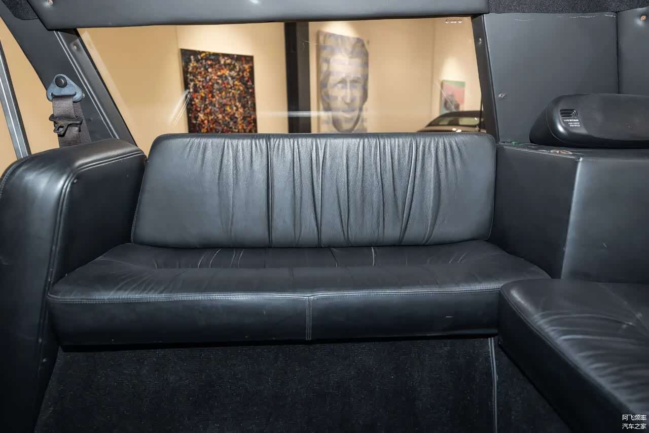 车厢内,环绕式后排长椅取代了简陋的货斗,搭配黑色奢华皮革包裹的内饰,尽显80年代豪车的浮夸与精致。