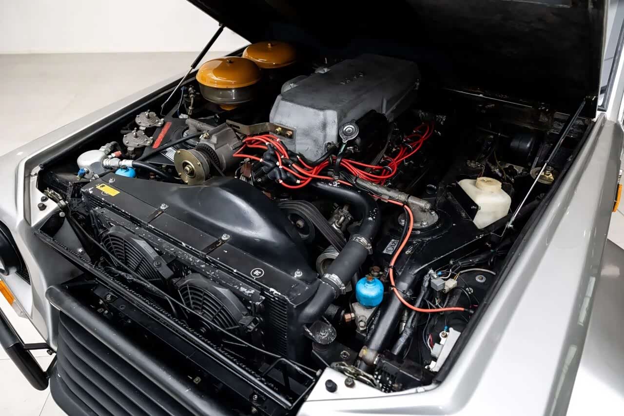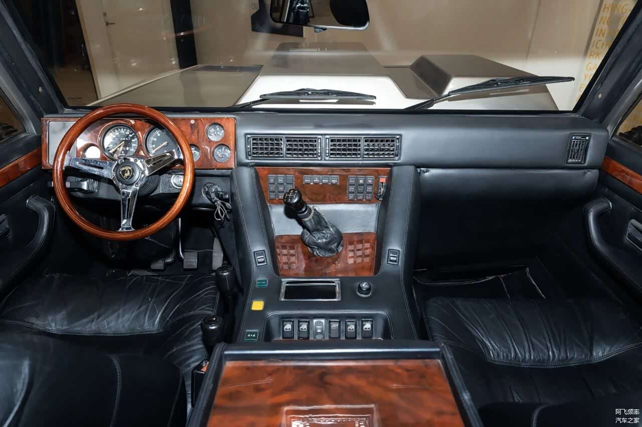 动力层面,这台孤品延续了兰博基尼的狂暴血脉。搭载的5.2升双顶置凸轮轴V12引擎,与Countach QV同源,配备六组韦伯化油器,2024年刚完成全面翻新,原厂输出高达455马力。与之匹配的是ZF五速手动变速箱,搭配双速分动箱,可实现后驱与四驱模式切换,三把自锁差速器更是将越野能力拉满——这份纯粹的机械质感,是如今电子化的Urus难以复刻的驾驶乐趣。