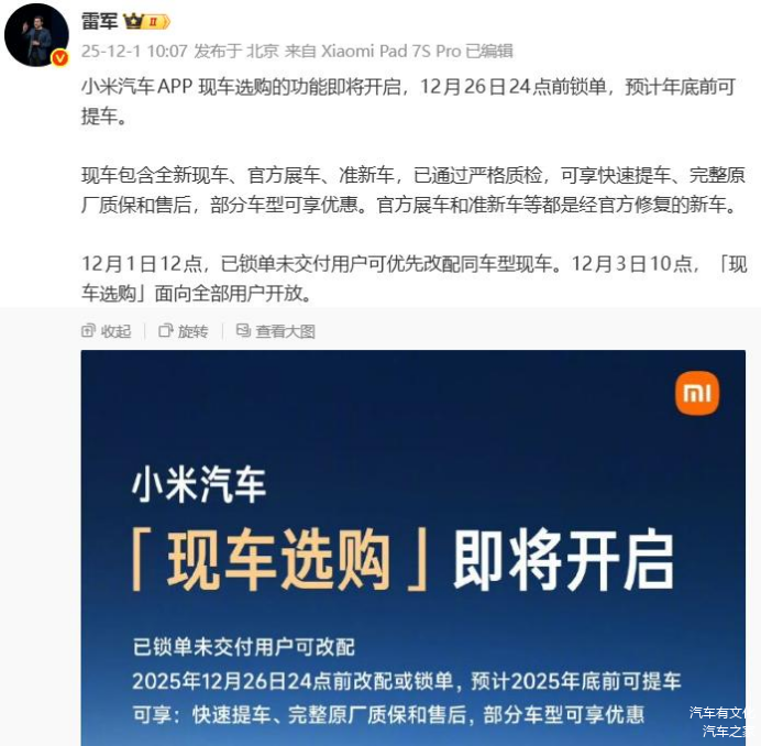 目前, 小米SU7(图片 | 参数 | 询价)、YU7两大产品都面临交付瓶颈,部分用户从下单到提车等待时间超过预期,整合后的销交服体系将打通数据与流程,理论上能缩短交付周期,提高周转效率,这也与雷军此前宣布的“现车销售”策略形成了协同。