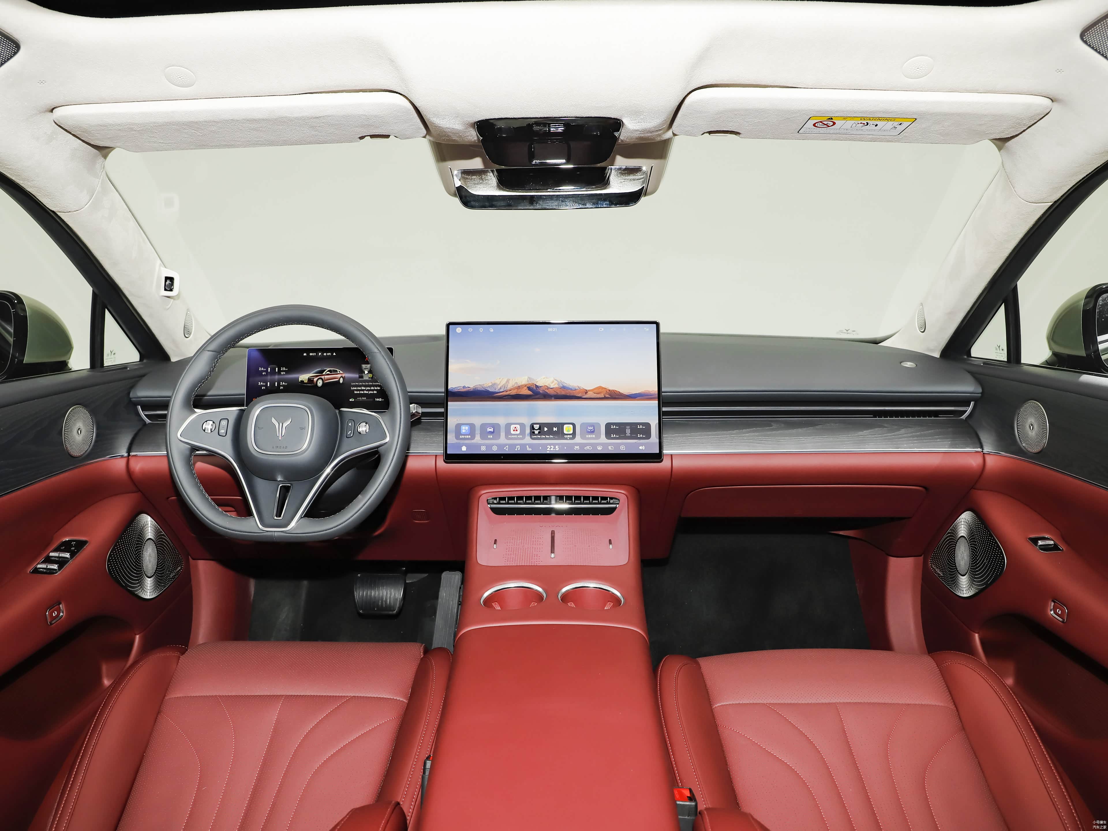 内饰方面依然是比较简洁的类型,提供有三幅式平底多功能方向盘、全液晶仪表盘、悬浮式中控屏以及电子怀挡,操作台部分设计有无线充电面板,中控屏运行了鸿蒙座舱HarmonySpace 5,而且后续会推送5.1版本升级。