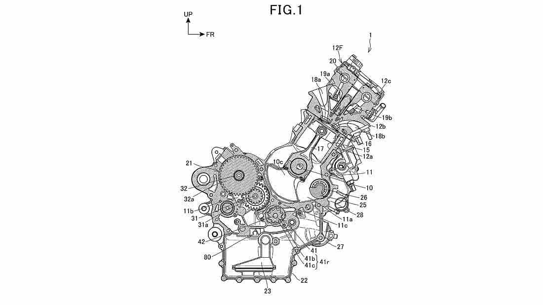如果有接触过上一代 VFR1200F的车迷肯定印象深刻,那颗引擎虽然动力饱满,但体积与重量也是「重量级」的,光是前气缸之间的间隙就宽得吓人。 不过从这次的新专利图来看,本田工程师似乎下定决心要让它瘦身,引擎与变速箱的整体外壳看起来异常紧凑。 这可能归功于新的润滑系统设计,通过在曲轴箱内设置小型的辅助储油槽,来提升发电机、启动盘、水泵浦和离合器的润滑,进而缩短了油道的长度,让整颗引擎结构更加扎实精简。