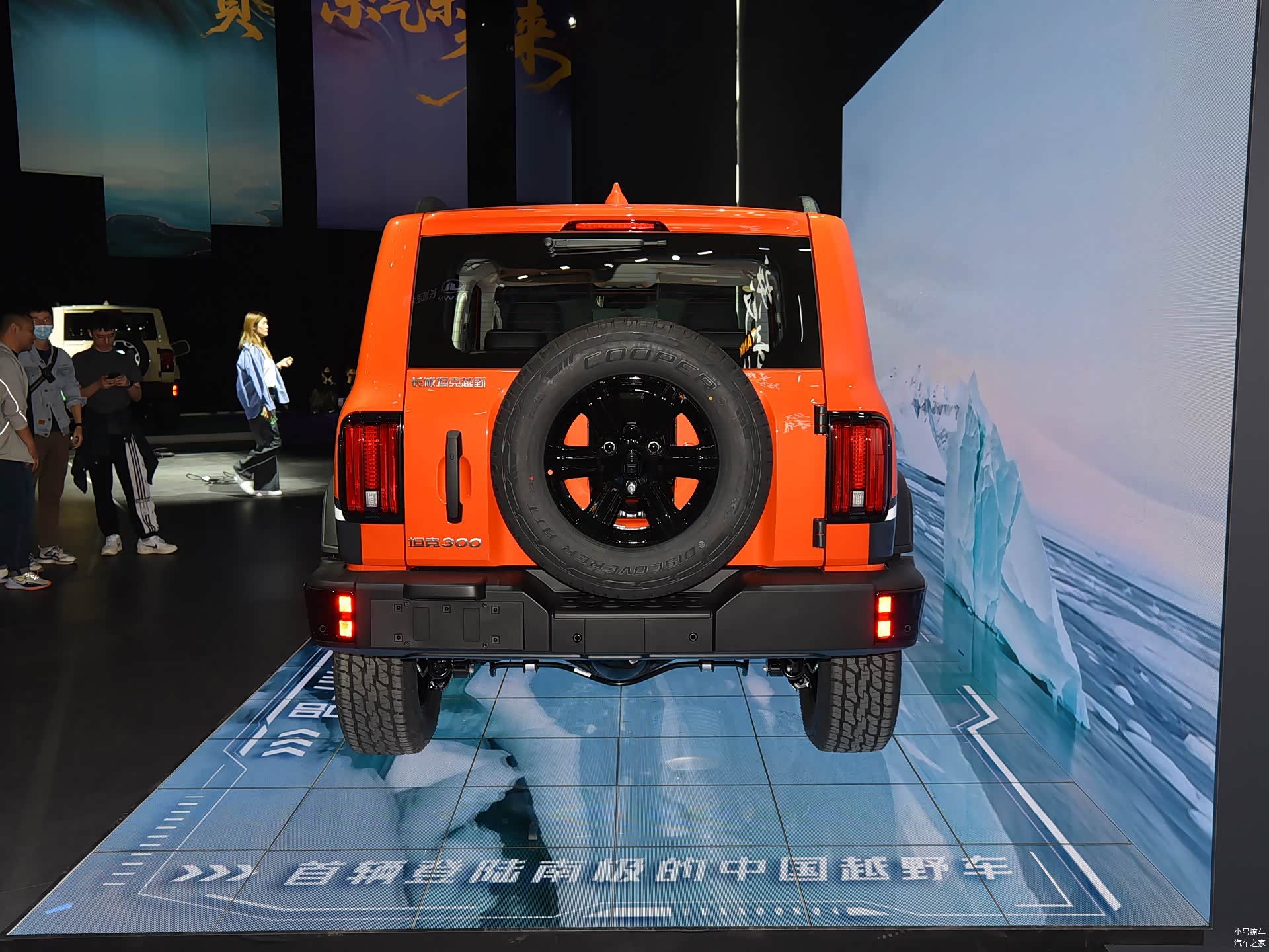 尾部造型方面,车顶配备有高位刹车灯,熏黑的尾灯组采用了垂直布局,内部结构有着比较强的立体感,尾门采用了侧开设计,外挂式的全尺寸备胎也没有缺席,下包围部分配备有粗壮的黑色保险杠,让视觉效果更显狂野。