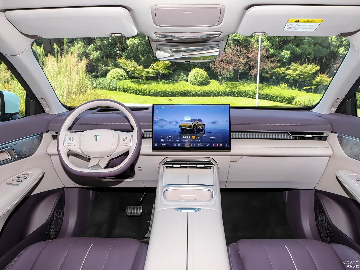 进入车内,座舱采用 “轻奢环绕悬浮” 设计风格,大面积肤感软包覆盖中控台与车门内饰板,搭配两种双拼配色方案,营造出越级的豪华质感。55 英寸 AR-HUD 全息式增强现实系统替代了传统液晶仪表,导航信息、行车数据可直接投射到前挡风玻璃,视觉效果震撼;15.6 英寸 2.5K 向日葵屏支持旋转调节,配合 12.3 英寸副驾智慧屏,形成双屏联动体验,车机搭载高通骁龙 8295P 旗舰芯片,空间表现方面,2900mm 超长轴距转化为宽敞的后排空间,后排头部空间达 952mm,1382mm 超宽体座椅久坐不易疲劳。后备箱常规容积达 473L,放倒后排座椅后可扩展至 1180L,满足家庭出行的装载需求。