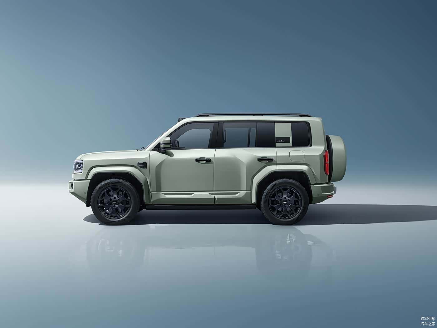 先来看看颜值,两车都是“方方正正”的硬派长相,但气质完全不是一个路子。福特智趣烈马走的是“复古潮玩风”,粗犷的进气格栅配上可点亮 “BRONCO” 标识和数字化大灯组,营造出一种复古又时尚的氛围;侧面造型简洁,隐藏式门把手和悬浮式车顶的设计,既增添了科技感又不失硬派风格;车尾配有外挂式备胎、侧开式尾门和竖向尾灯组,彰显出强烈的越野气息,仿佛随时准备征战沙场。