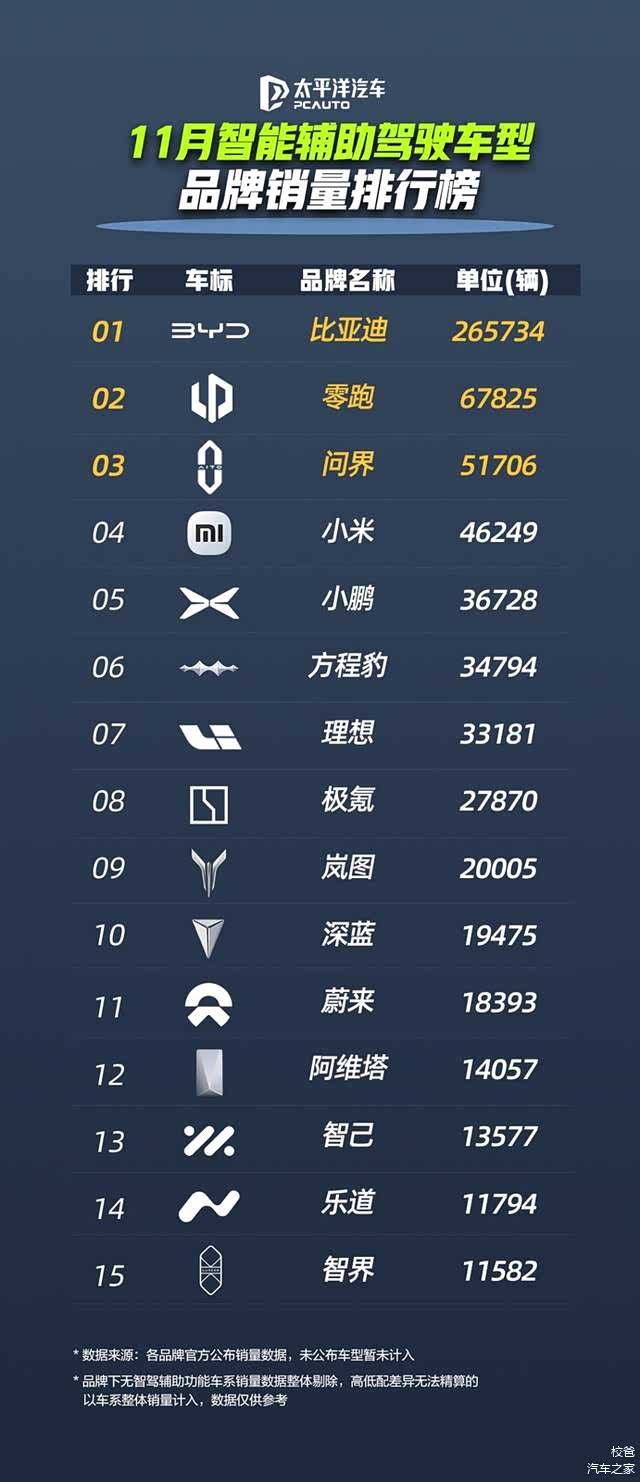 销量表现亮眼:王朝系列和海洋系列卖了265734辆,方程豹、腾势、仰望这些高端又有个性的品牌表现也挺稳,一起给比亚迪在智能驾驶这块儿搭起了强大的产品阵容。截至2025年11月底,搭载“天神之眼”的车型累计销量突破230万辆,稳居中国辅助驾驶市场首位。