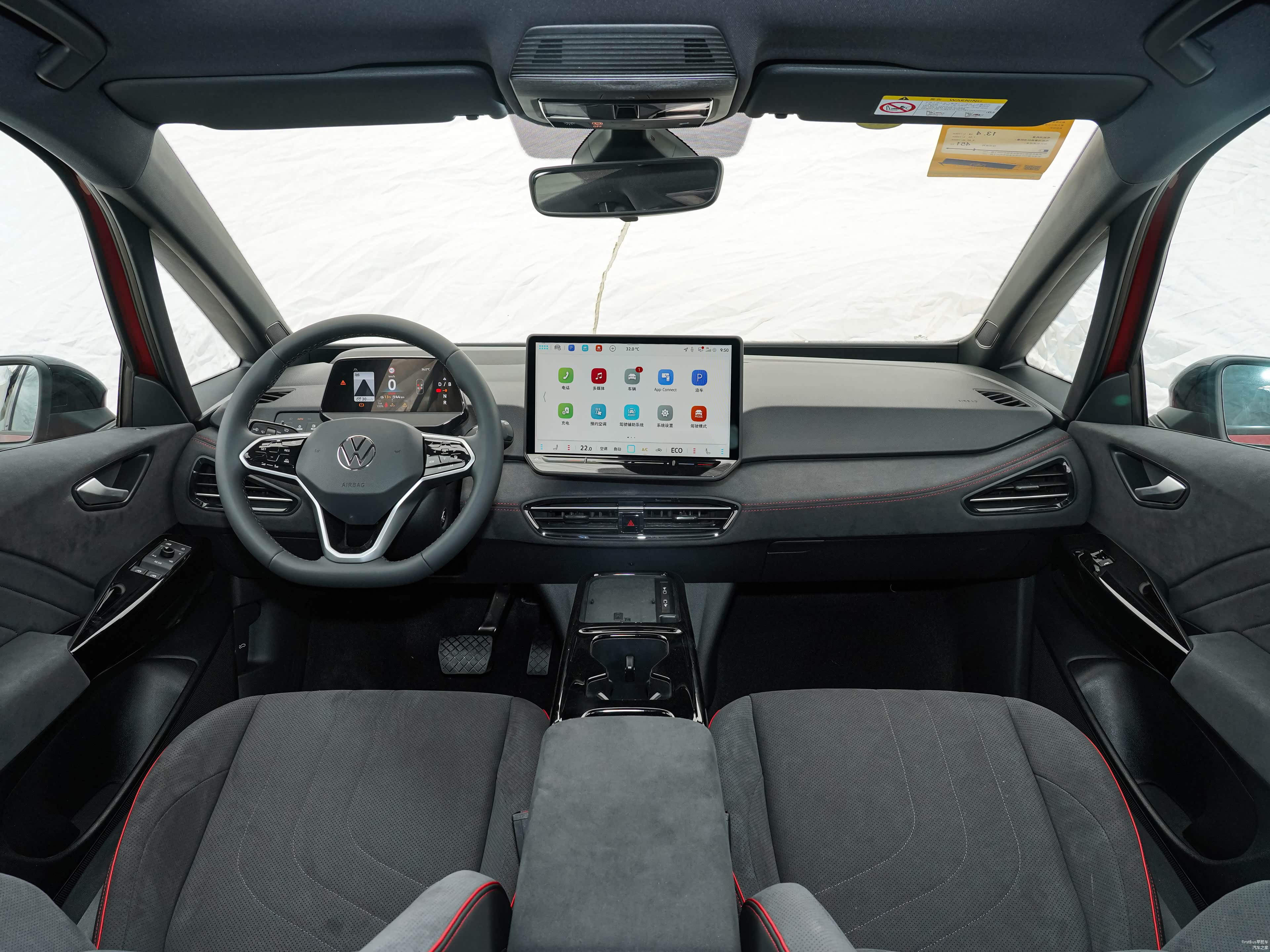 在智能化方面,大众ID.3配备5.3英寸液晶仪表和12.9英寸中控屏,支持Carplay/Carlife/HUAWEI Hicar手机互联、智能语音、在线导航、智享娱乐、智联控车等功能,同时也提供ACC自适应巡航、碰撞警告带自动刹车、车道保持、变道辅助、交通标志识别等驾驶辅助功能。