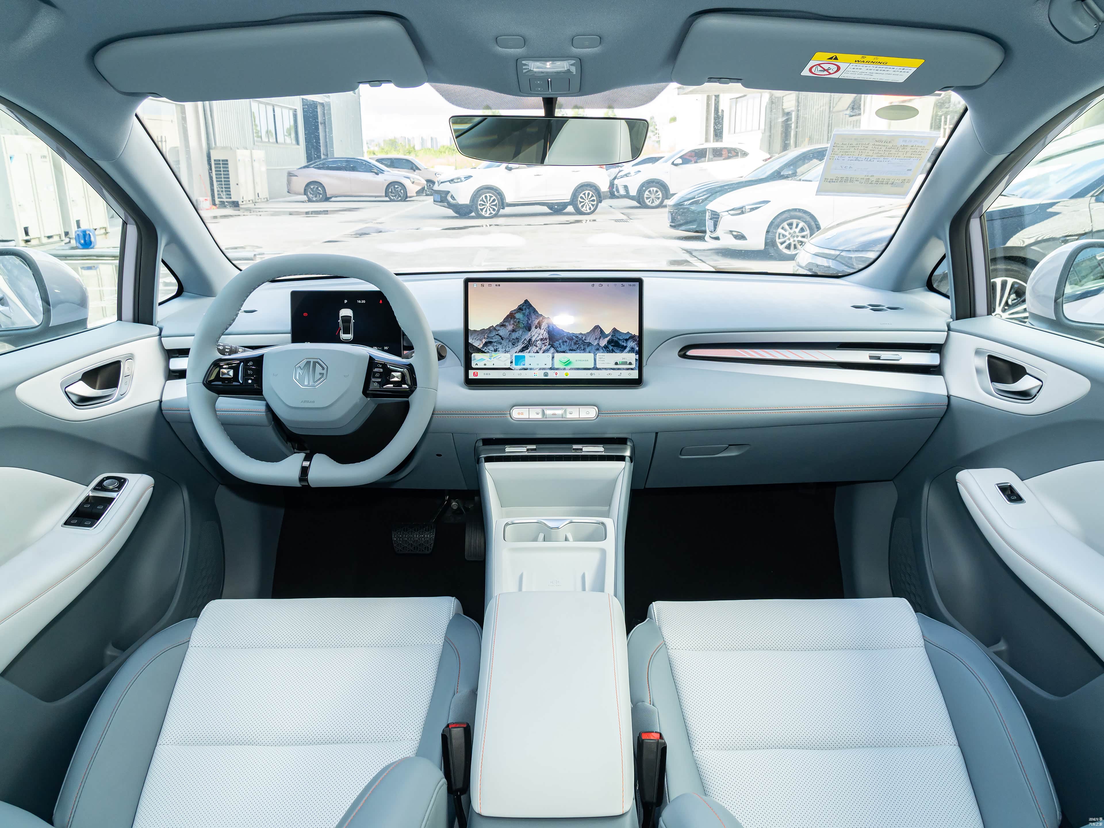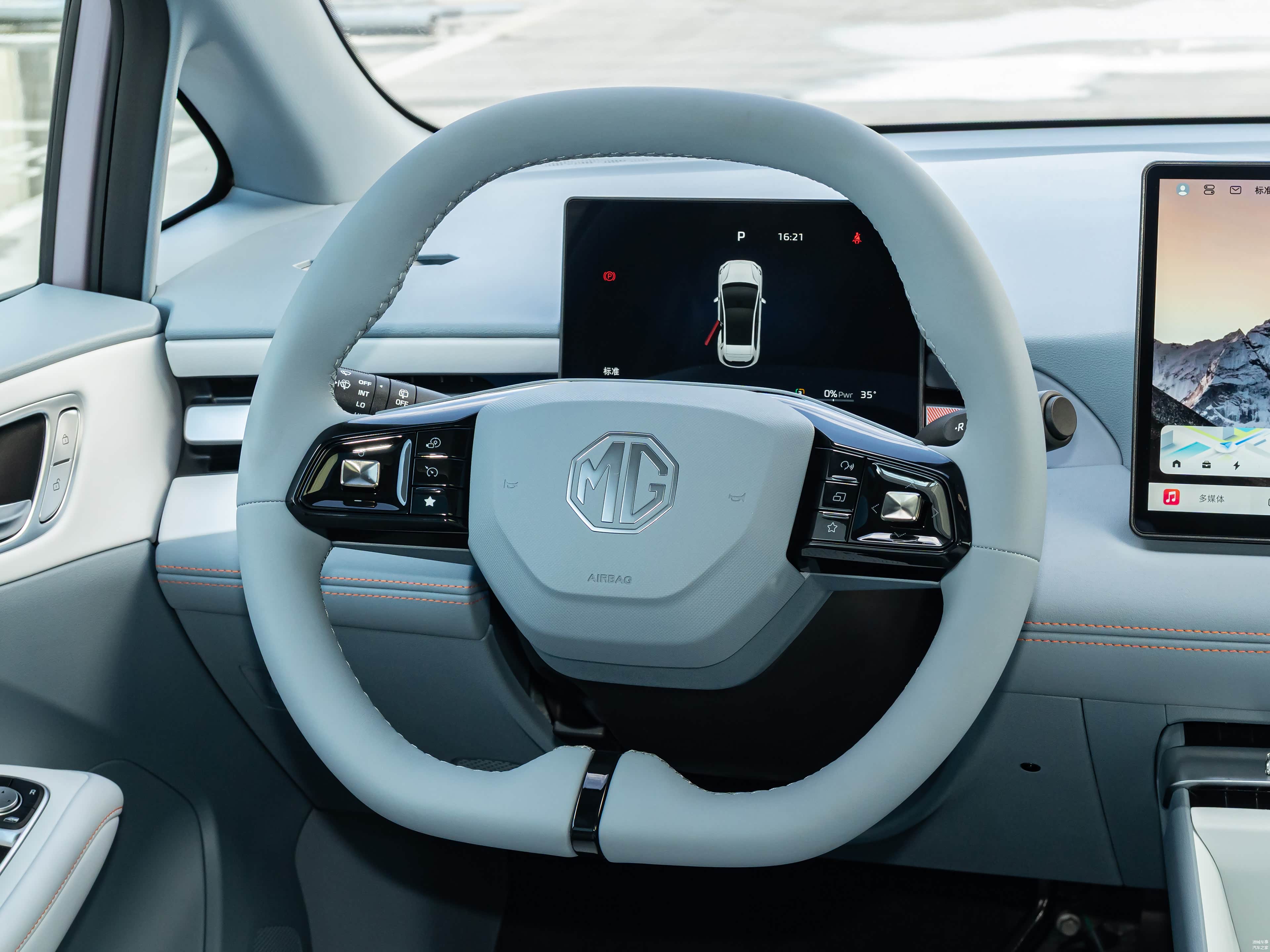 车内布局以实用为主,方向盘为双辐式设计,根据不同配置提供多种屏幕选项。包括10.25英寸、12.8英寸和15.6英寸三种规格,分辨率从720P到2.5K不等。车机系统搭载高通骁龙8155芯片,并集成了MG与OPPO合作的互联功能。这些功能支持手机语音控制车内空调、无感钥匙操作,以及车机与手机之间的导航分享,兼容苹果和安卓设备,使用上较为灵活。