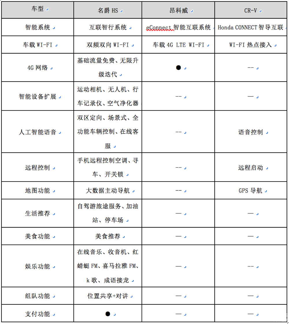 名爵HS在嗅觉上就配备了以往高端豪车上专享的蒙氏香氛系统,由顶级国际香水大牌定制香氛。它的Dream Air座舱空气管理系统,独具匠心地把独立空气净化器与香氛系统合二为一,3分钟净化全车空气后,释放愉悦香氛,多种调型的香氛随心选择,让车舱随时随地充满荷尔蒙的味道,激活驾控激情。值得一提的是,名爵HS还依照全球标准制造,特别是严格按照欧洲环保选择材料,让用户的每一次呼吸都是健康的、绿色的。可以说,超懂年轻人的名爵HS,以极致的感官体验满足并刷新了年轻消费者的驾乘新需求。昂科威和本田CR-V则没有配备香氛系统,驾车出行的幸福指数相对来说就略低了。