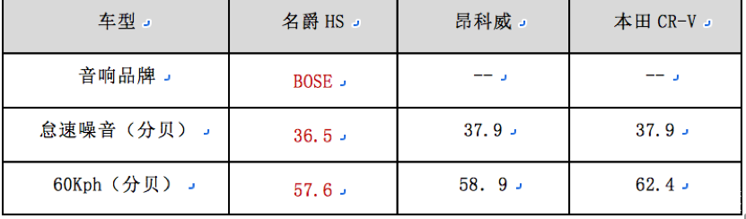 在听觉上,名爵HS与世界顶级音响品牌BOSE联手,为年轻人打造出渴望的“移动音乐厅”震撼声效。此次BOSE还专为名爵HS深度定制调音,通过一千次以上的对不同扬声器的测量、数百小时的专业调音,在车内营造出宽广的空间感以及极具包裹效果的环绕氛围,打造专属的移动音乐厅。而名爵HS本身匹敌豪车SUV的NVH水平,让驾乘者在车舱内静可享惬意私密空间、动可感震撼声效。在音乐播放上,昂科威和本田CR-V跟名爵HS相比,不仅隔着一个世界顶级品牌BOSE音响,而且就昂科威来说,刹车磨出的金属声还是很影响情绪的。昂科威和本田CR-V在听觉方面还有较大的提升空间。