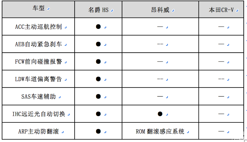 以往三十万级或者更高端的豪车才搭载的主动安全系统,名爵HS都配备了。和名爵HS相比,昂科威只配备了HBA智能自动远近光控制,相比它的高价,显得有些“掉价”。本田CR-V的主动安全配置就更不全面了,这对于日益复杂的汽车行驶环境来说显得心有余而力不足。