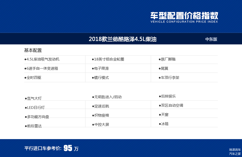 4.5L车型的优缺点非常明显,动力强、省油、耐用等是共识,但高达95万元的售价也是产生距离感的主要原因,能真正为它痛快刷卡的还是少数派。另外,2018款车型的油箱加热功能是个亮点,解决了冬天启动难的问题,比较贴心。