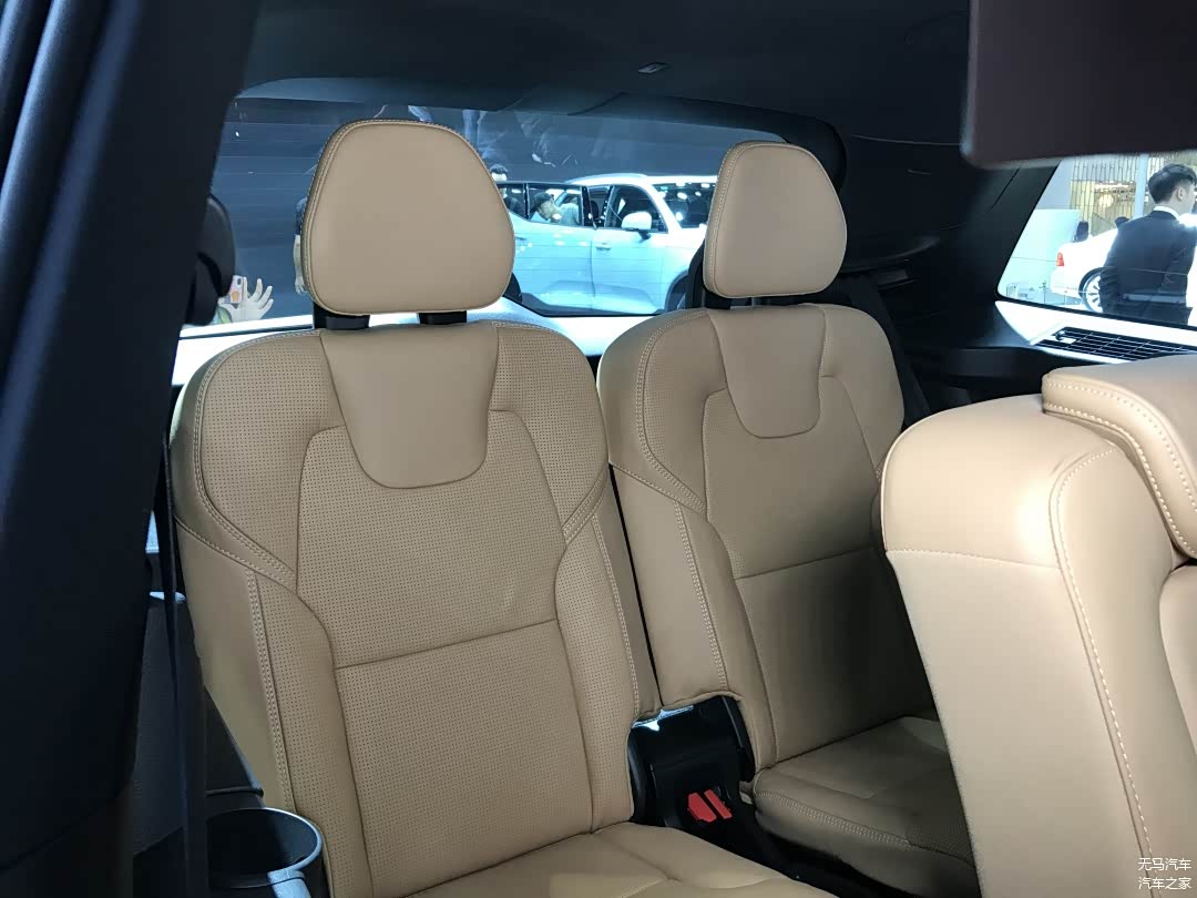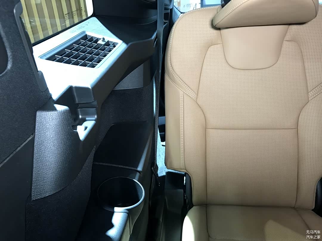 配置方面,正如我前面所说的,我很欣赏能在C柱上设置第三排出风口,吹起来会比较舒服;然而尽管它有着全景天窗和面积巨大的侧窗加持,但是黑色的顶篷致使其压抑感有点太强了;另外座椅两边各有一个杯架以及一个带盖子的储物格;而由于是两张独立的座椅,XC90的车宽足够,其又在两张座椅中间多了一个大容积的开放式储物格,这倒是相当惊喜。