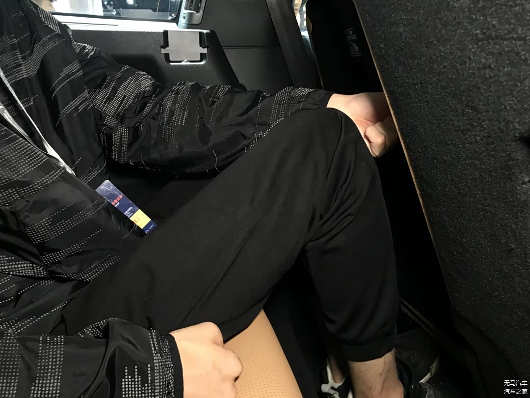 由图我们可以看到,在调整到合理距离时比亚迪唐的第三排空间有点抓襟见肘,我们的测试者坐进去头发已经是完全顶着汽车顶篷了,而腿部空间也只是勉强塞下一指左右的距离。几乎可以说是没有空间换姿势乘坐了,建议只是作短途应急之用。