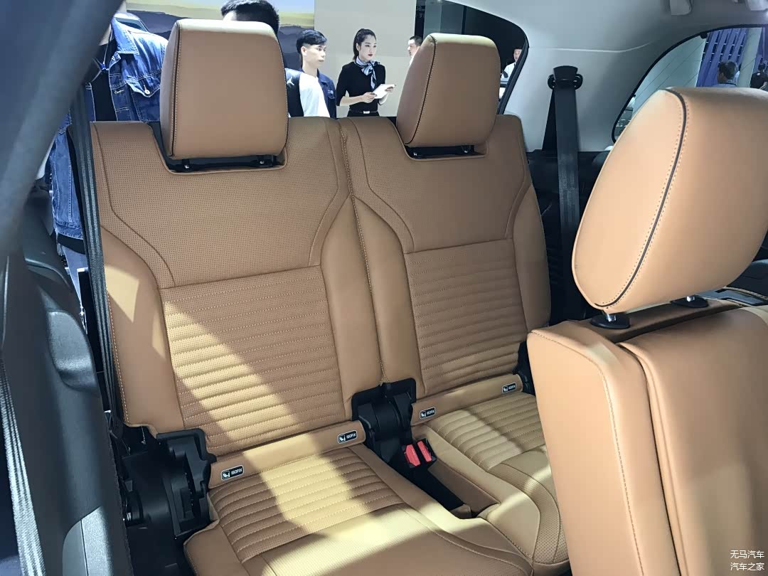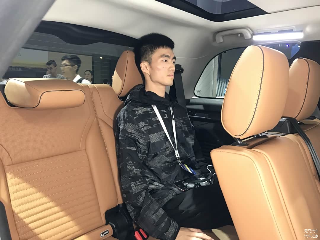 配置侧面上,由于发现5采用的是两段式的天窗设计,第二段天窗直接延伸到了第三排乘客的头上,配合上面积非常不错的侧窗,整体呈现出来的开扬感是在场所有7座SUV最好的;另外,储物格、出风口和杯架一应俱全,满足了第三排乘客的基本需求。