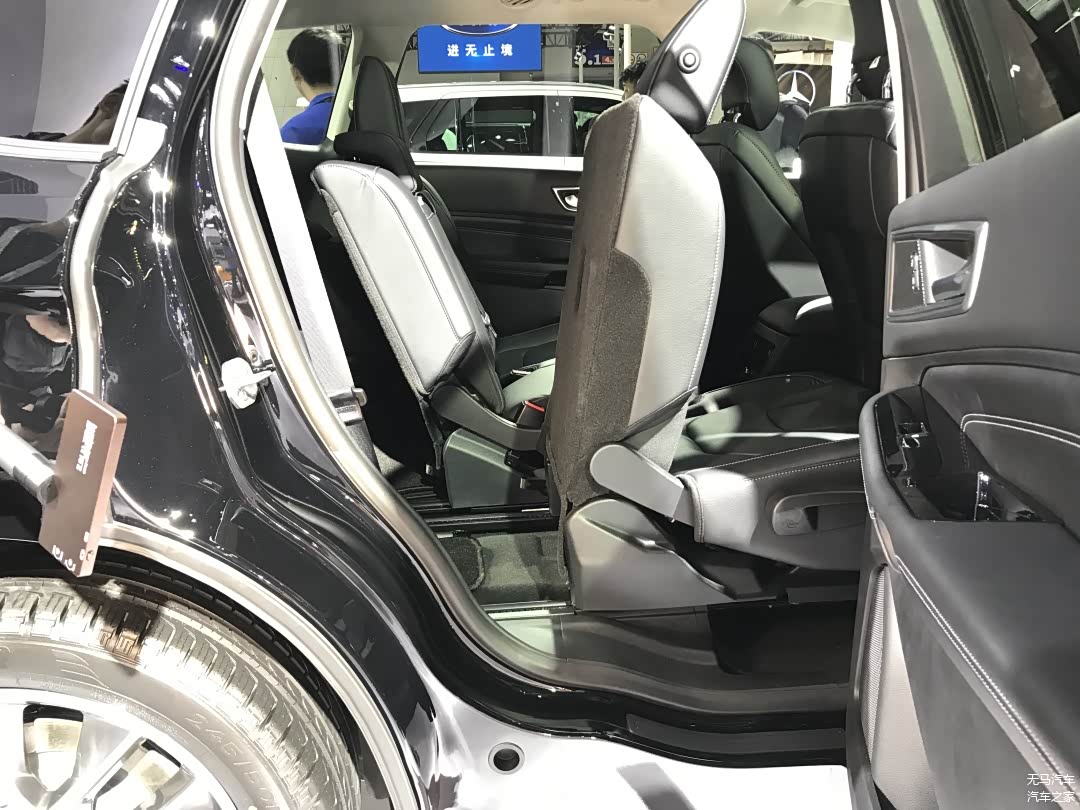 舒适度方面,首先要说的是从后门进入第三排的开口非常之小,年轻人进入第三排都显得不太方便;另外,比亚迪的坐垫整体比较单薄,坐起来的舒适感欠奉;还有影响舒适感的是第三排的地台高度比较高,人坐在里面就像是坐在小板凳上面,有点憋屈。