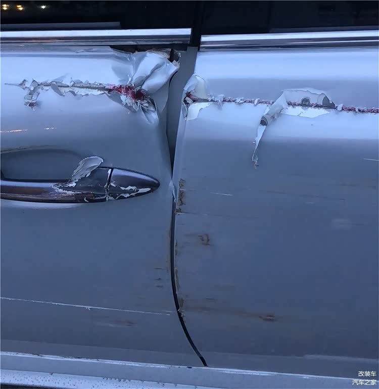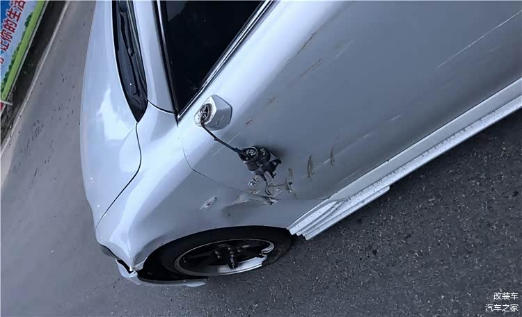 不过非常的不幸,在车子刚刚改好的第二天,车主出去溜车时却被一辆突然变道的大货车来了个亲密接触,刚贴上的镭射白贴膜以及一个装车跑了不到50公里的TE37,就这样被撞坏了,看着小编都感到阵阵心痛!