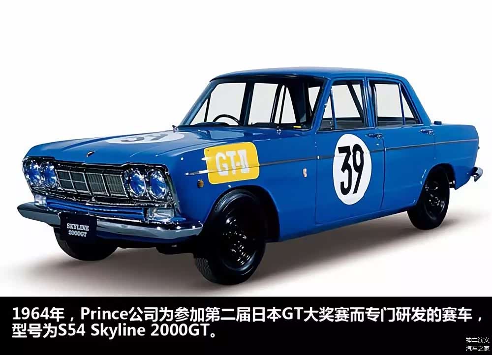 虽然公司经营水平一般,但是Prince(王子)公司却打造出了面向豪华汽车市场的Skyline车系,而GT-R事实上最早就是属于Skyline车系中的性能车款。在1964年第二届日本GT大奖赛的GT-2组别比赛,Prince公司为参赛而专门研发的型号为S54 Skyline 2000GT的赛车大放异彩,包揽了该组别的第二到第六名。这就是战神的真正起源。