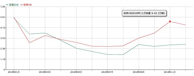 在2018年国内SUV销量排名中,宝骏510以36.14万辆销量成为亚军,仅比第一名销量45.26万辆的神车哈弗H6少9万余辆。以前宝骏510有4款售价区间为6.98-7.78万元(手动优享型、手动尊享型、自动优享型、自动尊享型)的车型, 如今增加了3款指导价在5.58-6.98万元的车型。