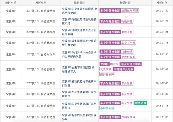 有人说,一分钱一分货,廉价的宝骏510品质会好吗?还真说不准。从目前宝骏510的大保有量反馈出来的质量问题来看,其实宝骏510的投诉并不多,或许不排除2017年2月才上市的宝骏510在行驶4、5年后质量问题会增多,但目前只是漆面起泡开裂、部件开裂和车身生锈等完全不影响车辆使用的小毛病,而这样的车开4、5年后车主早换车了!