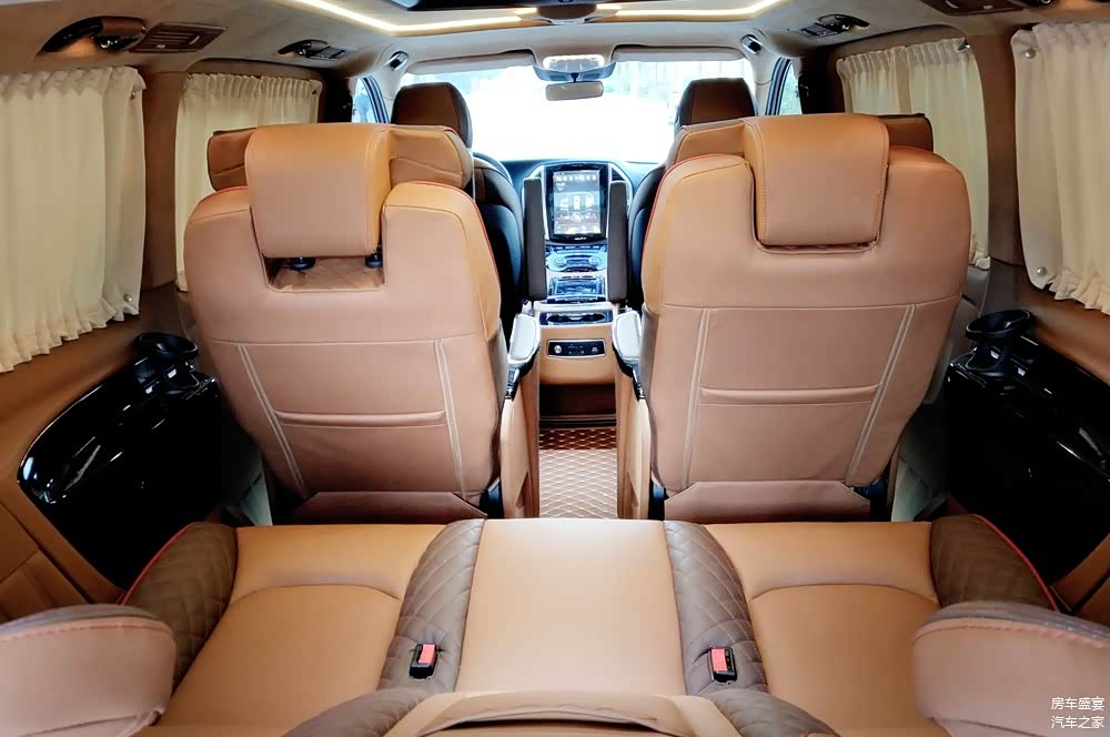 拉开Metris AM500精英版的电动防夹车门,踏入后舱,我们感受到定制房车真正的奢华。整车2-2-3的经典7座布局,利用每一寸空间创造无限的舒适度。两张航空舱级首长座椅,尺寸宽大,填充物十分的柔软。在功能上更为丰富,电动调节,前后旋转,座椅加热通风以及按摩都一应俱全。