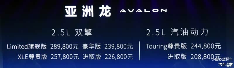 熟悉丰田的消费者都知道,在美国市场,亚洲龙的定位是丰田品牌旗舰轿车,其售价要高出凯美瑞不少。以混动车型为列,凯美瑞双擎起步价格为2.825万美元,亚洲龙双擎为3.655万美元,亚洲龙价格高出近30%。进入中国市场之后,亚洲龙2.5L车型官方售价20.88万元,比凯美瑞2.5L的21.98万元低1.1万元;双擎车型方面,亚洲龙双擎为22.68万元,同样低于凯美瑞双擎的23.98万元。海外市场定位更高的亚洲龙国产后的价格低于凯美瑞,如此“拼”的定价表明,一汽丰田不想在中国B级车市场再失败一次。