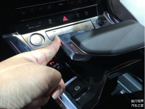 个人觉得最有意思的是e-tron的挡把设计,全系奥迪e-tron采用飞机档把设计,手感十分不错。不过和其他奥迪飞机档把不同的是,其并不能直接前后推动,而是通过左侧镀铬拨快进行换挡操作,十分有意思。