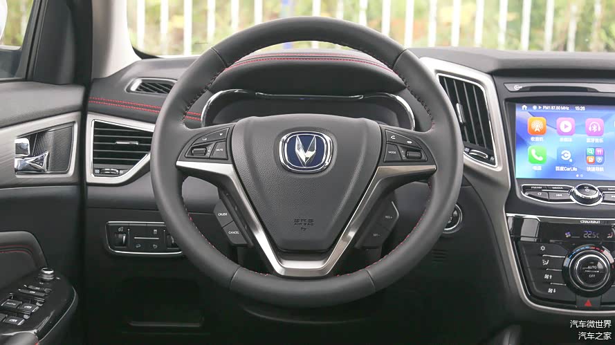 内部空间的造型在设计上更加的具有犀利性,中控台的设计带有一定强烈的层次感,整体的T字形设计更加的实用,同样也减少了内部空间的使用范围,方向盘所采用的三幅式设计更加的简单,多媒体区域的显示屏在两侧所加入的平行式空调出风口,带有一定的霸气性,换挡杆前侧区域的设计上呈凹陷式的设计,换挡杆与中央扶手的设计相互连接,形成了一条直线存在,座椅的设计上加入了较具年轻气息的线条装饰,更加的年轻化,车门内侧所加入的拼接式设计呈现出一定强烈的层次感。