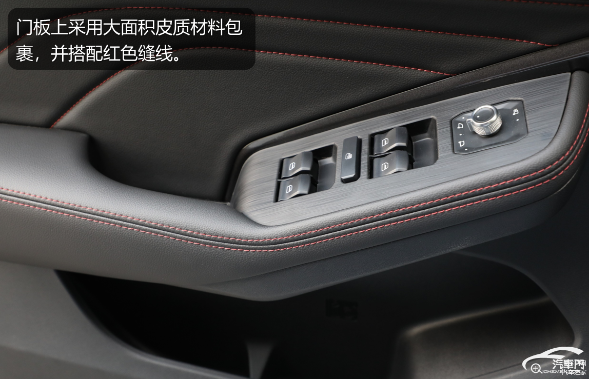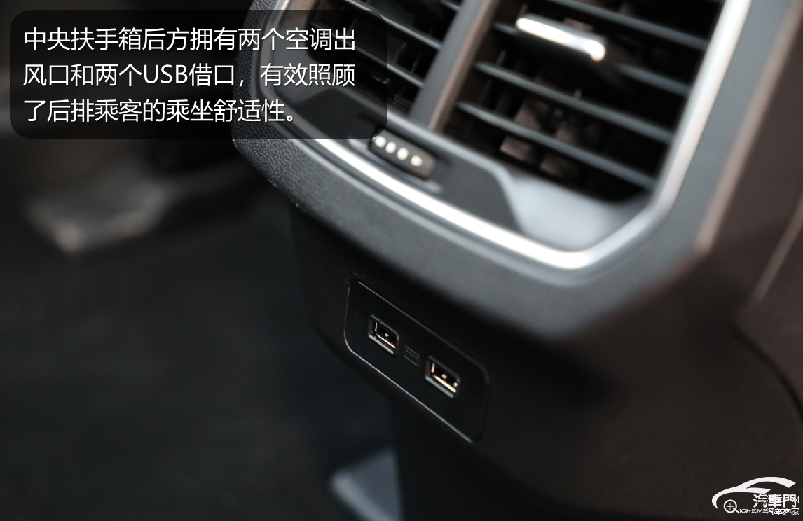 哈弗F5的门板上都采用大面积皮质材料包裹,并搭配红色缝线。中央扶手箱后方拥有两个空调出风口和两个USB接口,有效照顾了后排乘客的乘坐舒适性。哈弗F5虽然轴距只有2680mm,在同行业中并不突出,但依然拥有不错的空间表现。特别是全景天窗开启后,后排无论是视野还是舒适度都能得到明显提升。此外后排中央隆起并不明显,即使后排乘坐三人仍然拥有不错的舒适性。