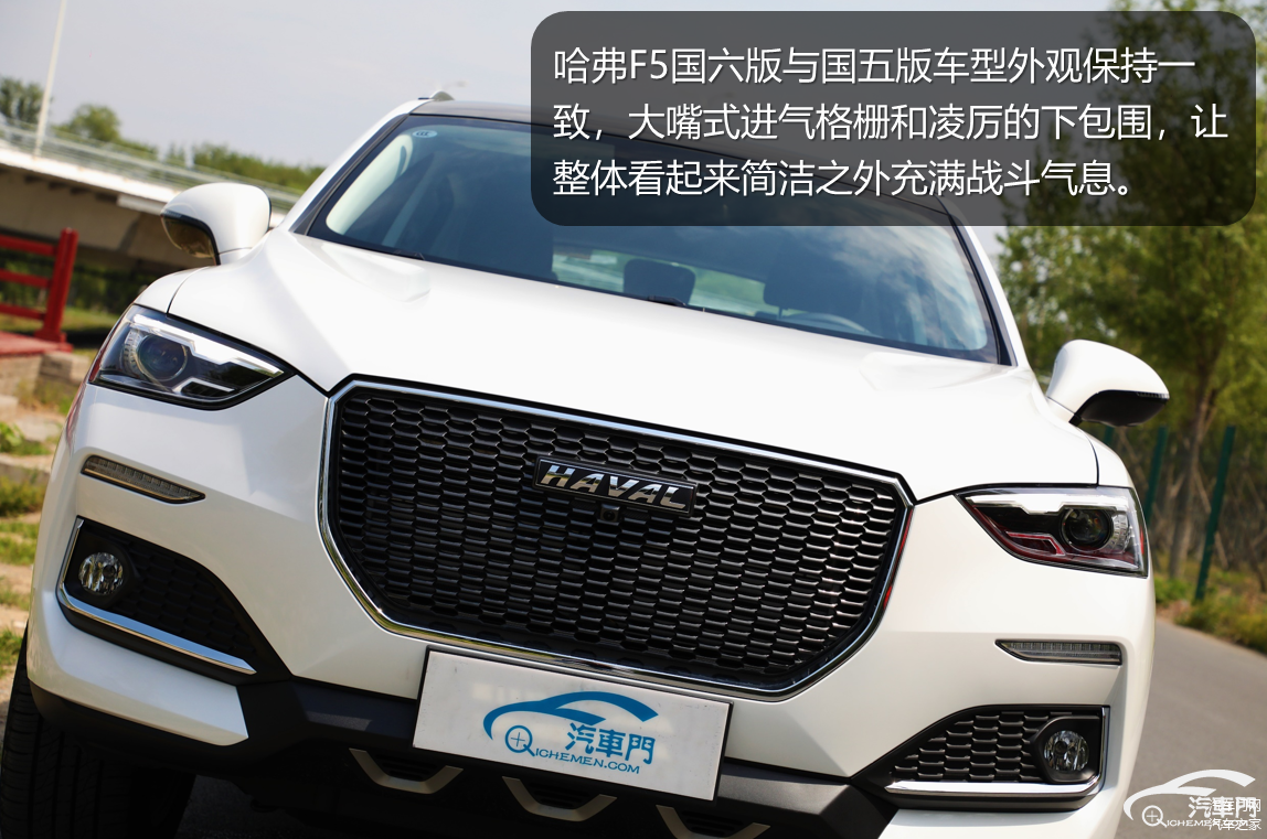 在去年汽车门网曾试驾过国五版的哈弗F5,当时澎湃的动力给我们留下了深刻的印象。而就外观来看,哈弗F5的国五版车型和国六版保持一致。全新的家族式前脸得到延续,大嘴式进气格栅和凌厉的下包围,让整体看起来简洁之外充满战斗气息。