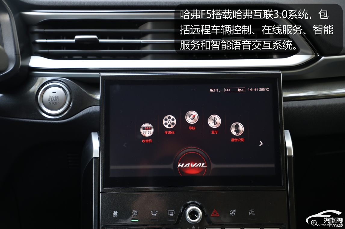 哈弗F5中控屏搭载了哈弗互联3.0系统,包括远程车辆控制、在线服务、智能服务和智能语音交互系统。远程车辆控制包括远程解锁/闭锁、远程启动/关闭引擎、远程开/关空调等功能;在线功能包括高德导航、QQ音乐和考拉FM等功能;智能服务则包括了专属人工坐席、道路救援等功能。不过需要提出的是虽然该系统在智能服务、语音交互等功能上反应较流畅,但在倒车时影像显示需要等待1秒钟的时间,有一定延时。