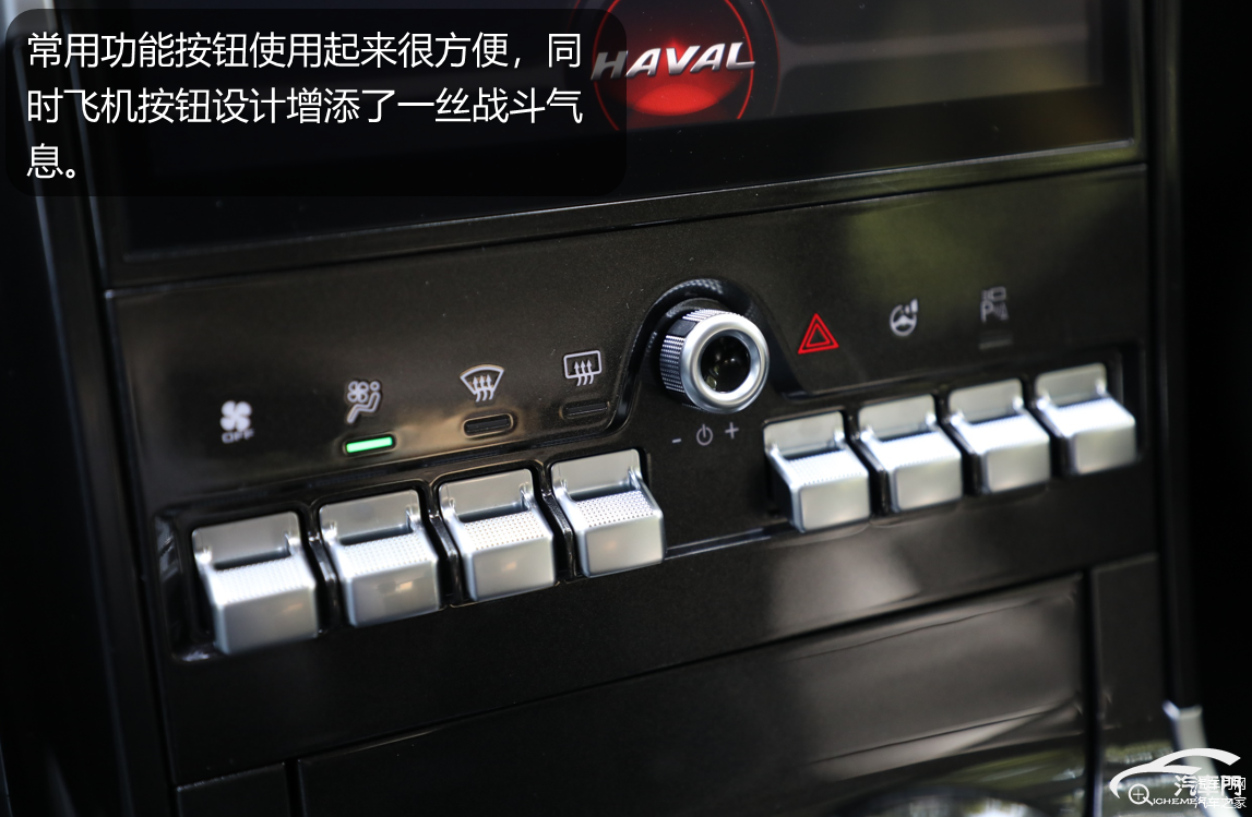 内饰是最能体现新款哈弗F5变化的地方,主要集中在一处有传统的换挡结构改为电子档把,无形中提升了内饰的科技感。哈弗F5内饰保持一贯简约、运动风格,中控台上方采用大面积软性材质包裹。中控台上保留了大量实体按键,都是一些常用的功能按钮,能够一键进入操作界面,使用起来很方便。此外,实体键也被设计成飞机按钮样式,无形中增添了一丝战斗气息。