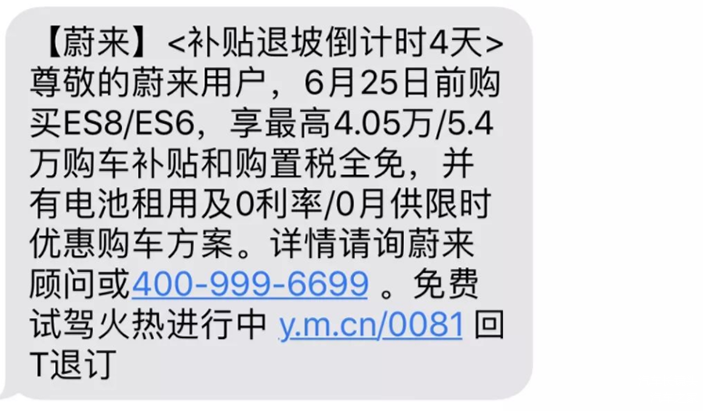 而且从蔚来汽车的反应来看,价格有大幅回升已是必然,想必许多在未来参加过活动或者看过车的消费者,从上个月开始便频繁收到蔚来提醒补贴退坡的短信轰炸。4月30日,蔚来官方公布了2019年ES6/ES8车型的补贴方案,补贴退坡后至今年年底下定,ES6享有3-4万元补贴,而ES8则享有1-2万元补贴,相较ES8去年7-8万的补贴,已经大幅下滑。