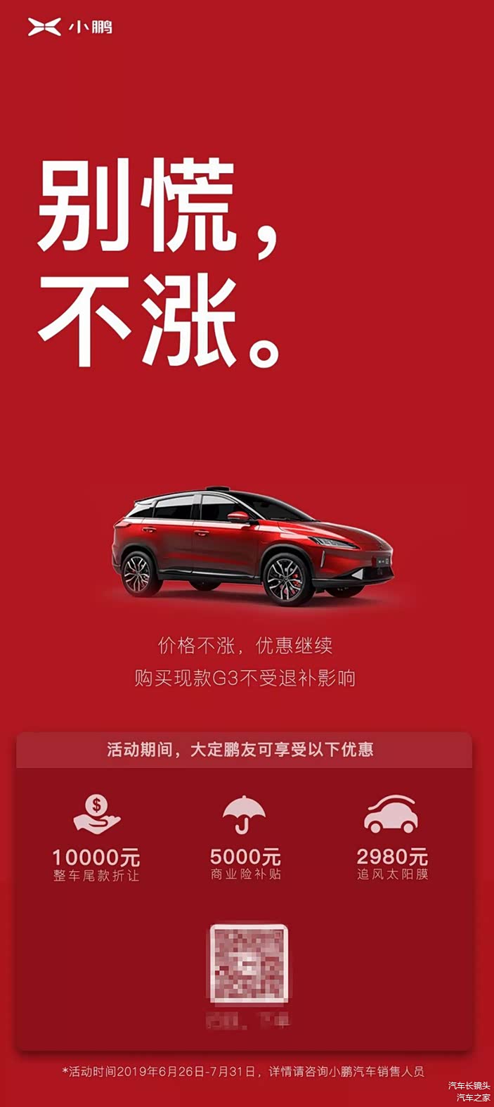 当然,小鹏为了保障销量,自身资金没少往车里砸,去年上市后的保价计划,到今年6月25日补贴退坡前的购车豪礼,实打实的优惠,都在迅速消耗小鹏汽车的资本。经咨询小鹏工作人员,截止至7月31日前,小鹏汽车将维持G3的补贴价格不变,但现在全国范围内最低配15.58万的悦享版均无库存,至于未来再次上架与否,工作人员表示与市场政策有关。同时,7月31日后,小鹏暂未针对G3和G7制定新政。所以按照现有政策和小鹏G3的技术参数推测,小鹏G3的购车补贴将从此前的8-9万,降低至2万元左右。这部分差价即便小鹏自己能够回补一些,也不过是杯水车薪。但站在消费者的角度,一款15万级的紧凑型SUV一夜飙升至20万级,恐难以令人接受。