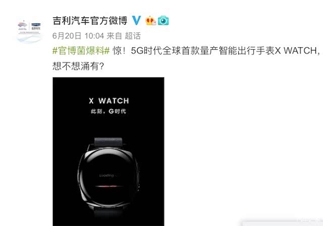 近日,随着5G商用牌照的颁发,华为、中兴、小米等手机制造商纷纷发声,而吉利作为汽车界的领潮者,在前不久爆料了一款新产品——不是汽车,而是手表——号称5G时代全球首款量产智能出行手表的X WATCH。