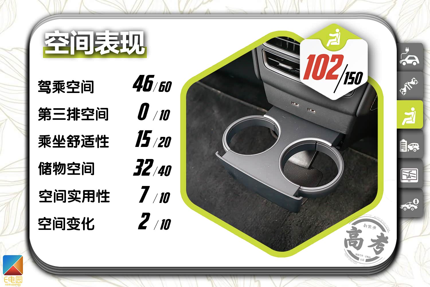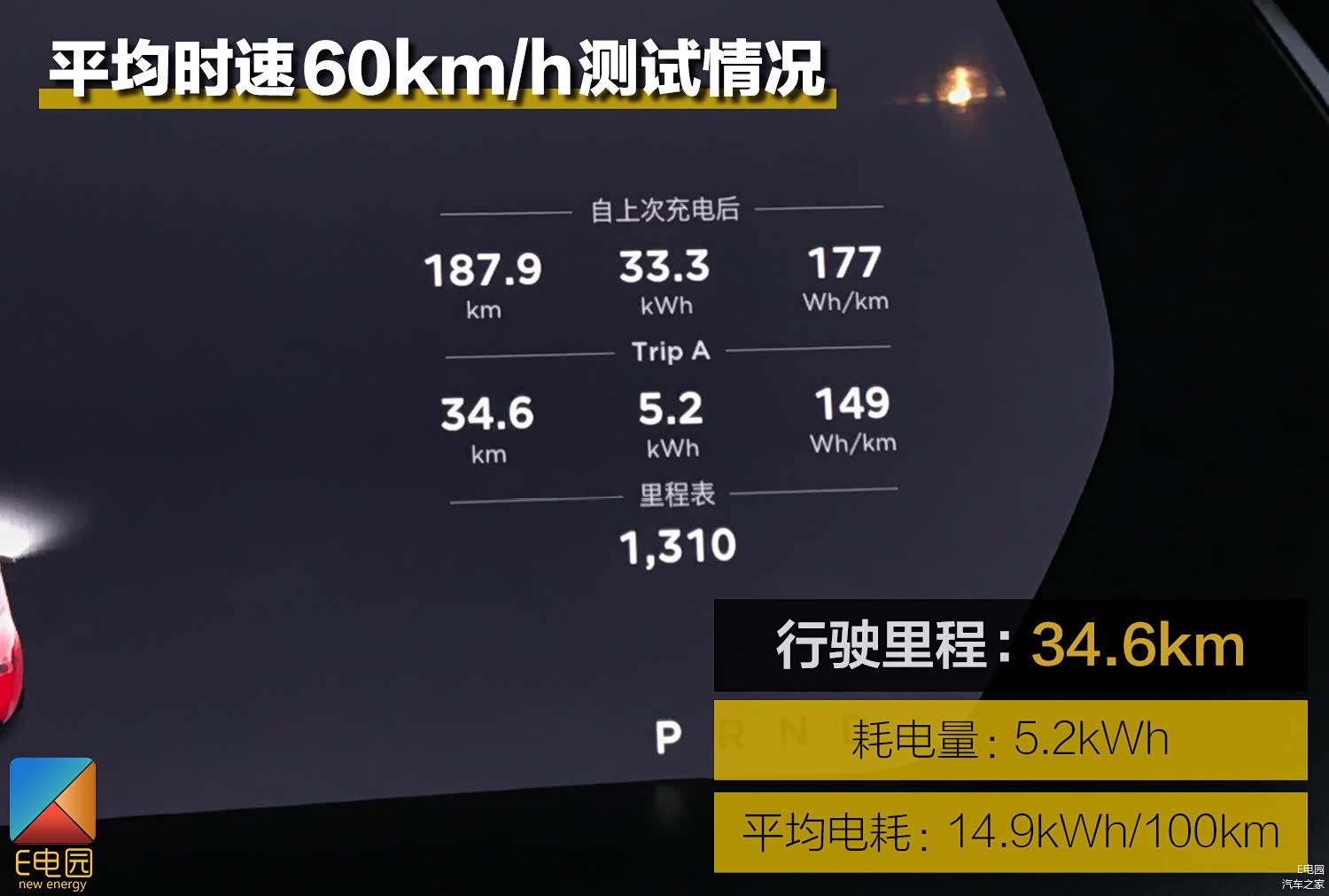 而在平均时速60km/h的条件下,车辆的能耗表现进一步提升,降低至14.9kWh/100km,毕竟60km/h左右的时速是最适合纯电动车发挥的条件。