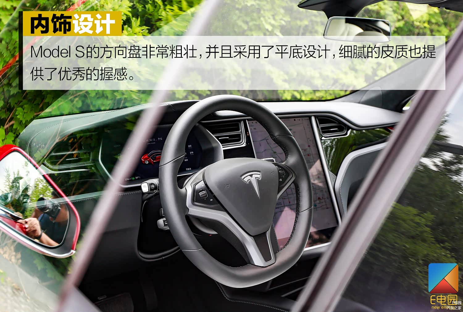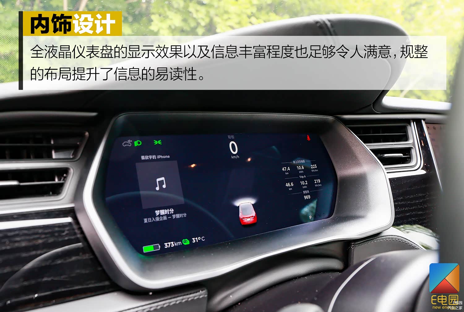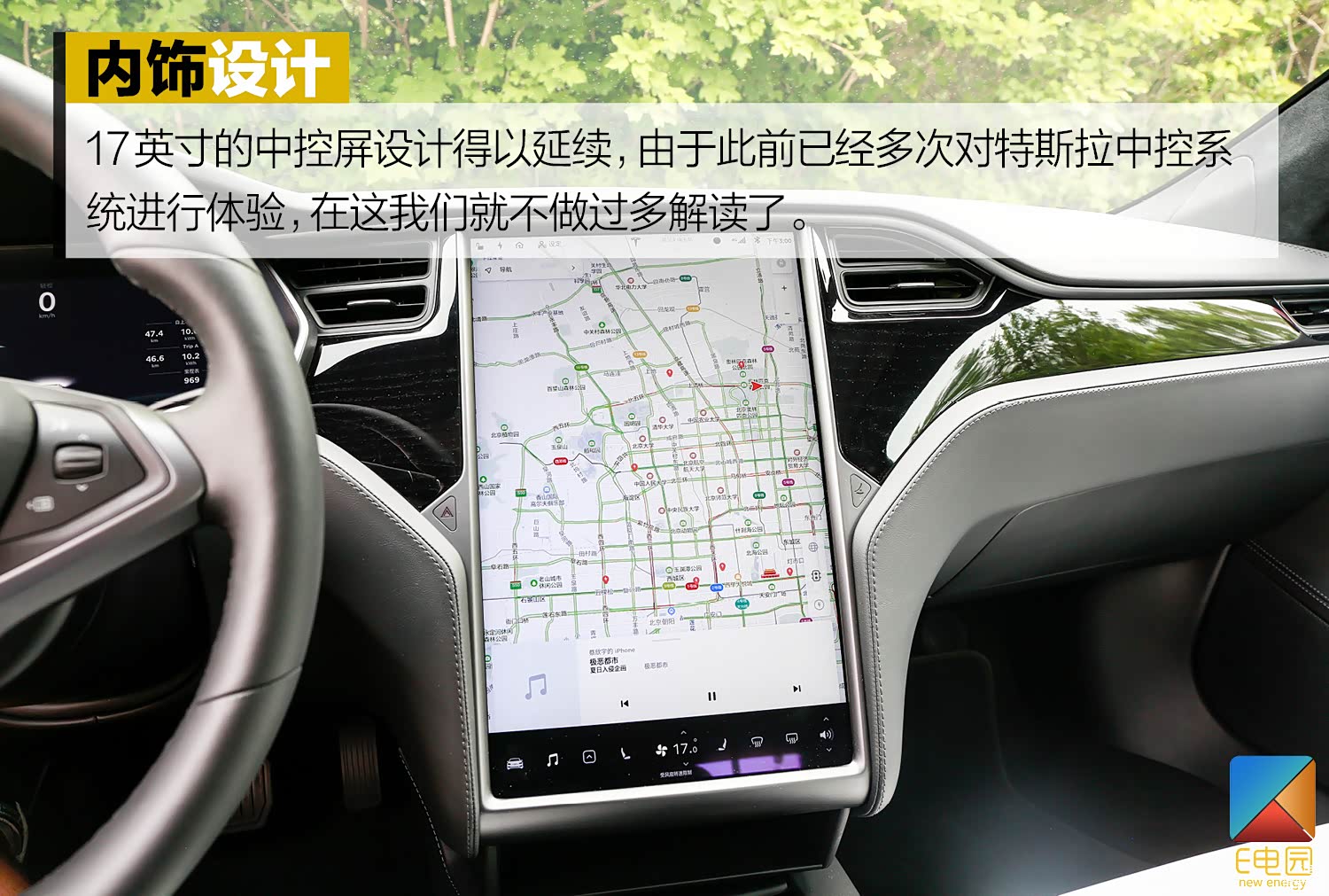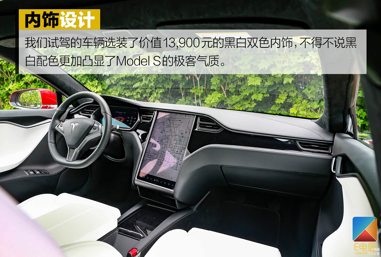 内饰部分,新款车型同样没有发生变化,我们试驾的车辆选装了价值13,900元的黑白双色内饰,不得不说黑白配色更加凸显了Model S的极客气质,车内的用料也是非常到位。不过选择浅色内饰也意味着要花更多的时间打理。