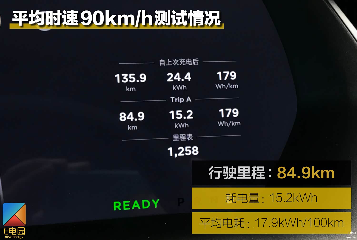 最令人惊喜的是Model S在高速路段的能耗表现,经过84.9km的高速行驶后,车辆的平均电耗为17.9kWh/100km,与另外两种工况下的电耗相比并未大幅提升,这也证明了Model S在高速行驶时出色的续航稳定性。