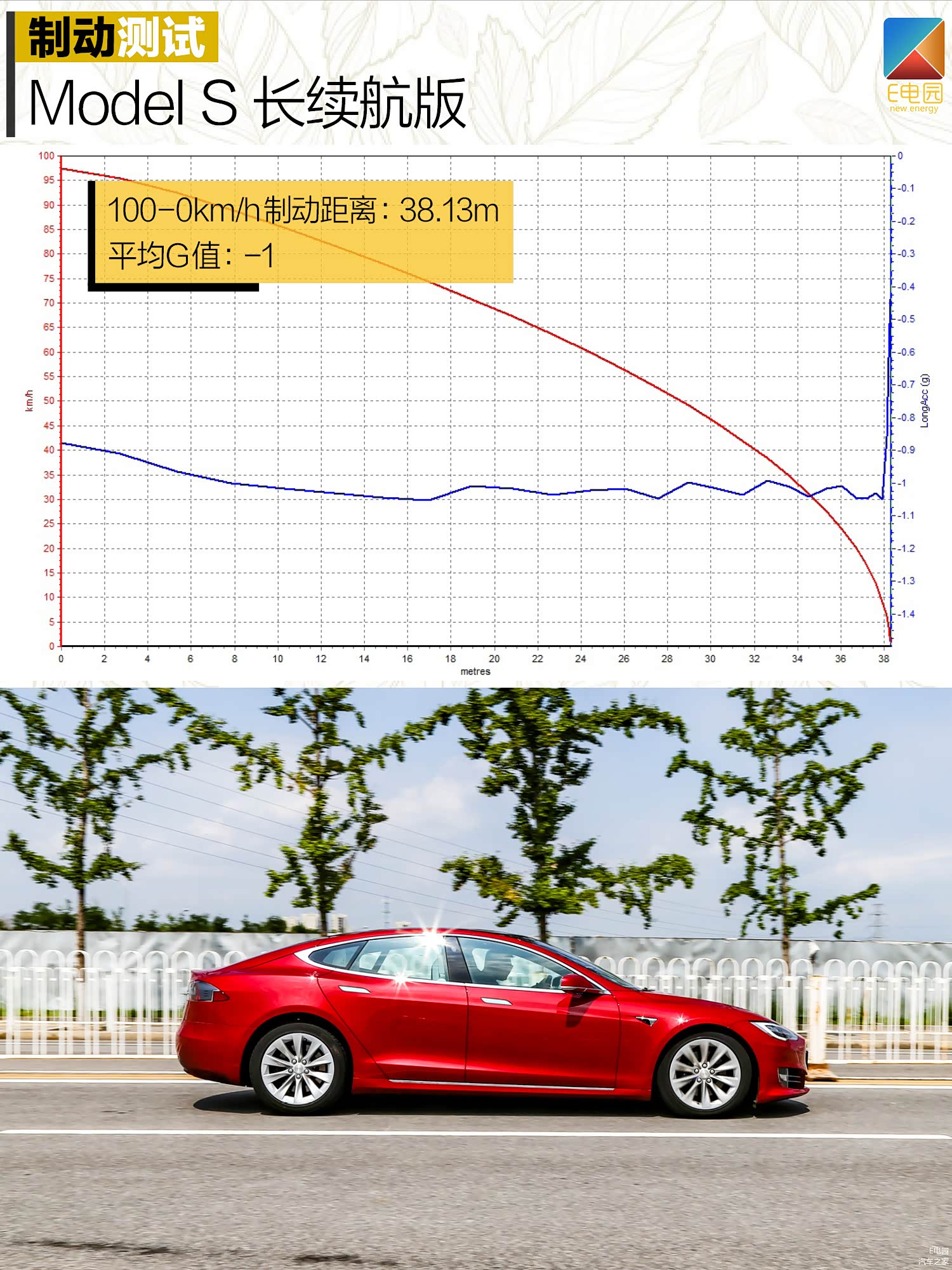 在续航测试前,我们还是先来看看Model S的拿手项目——百公里加速/制动测试表现。新款车型在动力方面进行了调整,其在前轴布置了一台经过优化的永磁同步电机,其最大功率为202kW,最大扭矩404N.m;车辆的后轴电机没有发生变化,依旧搭载了一台异步感应电机,最大输出功率为285kW,最大扭矩440N.m。相信看过参数之后,大家对于这台车的动力表现应该已经有了预期,下面我们就来看看其实际百公里加速能力如何。